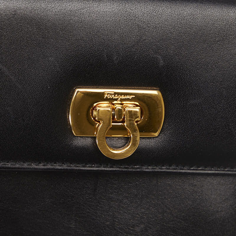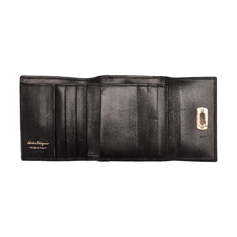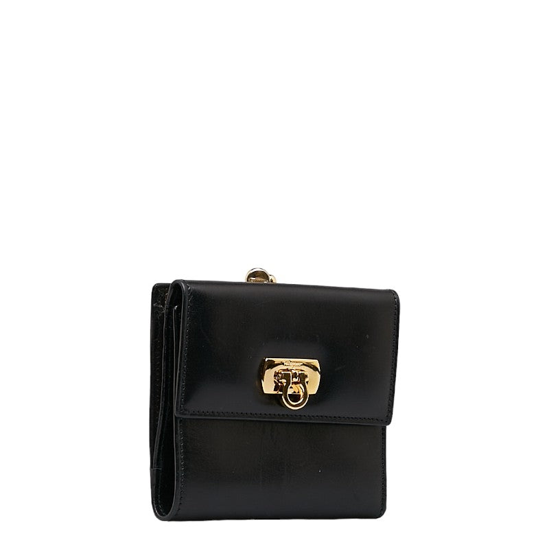 サルヴァトーレフェラガモ ガンチーニ 三つ折り財布 220048 ブラック レザー レディース Salvatore Ferragamo 【中古】