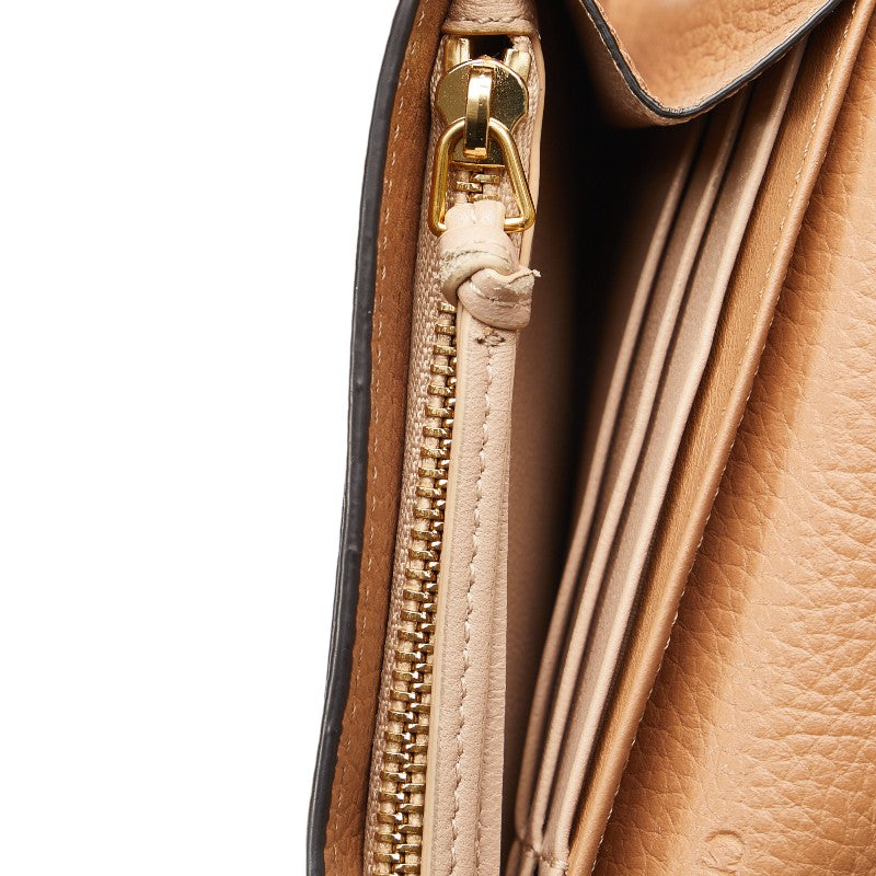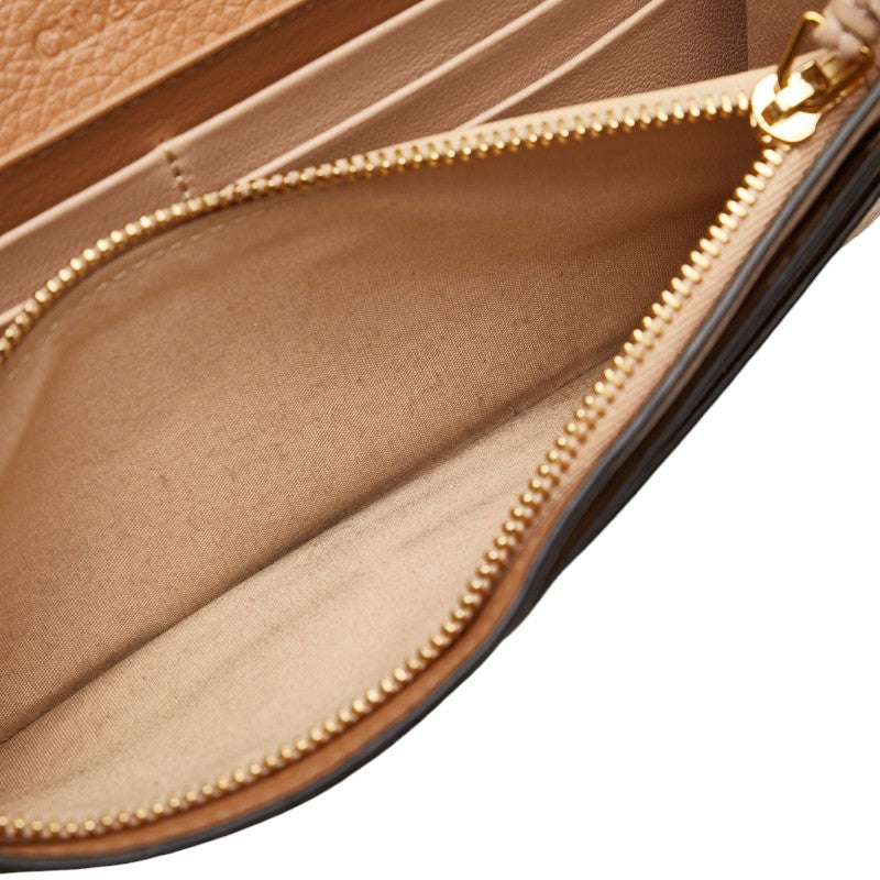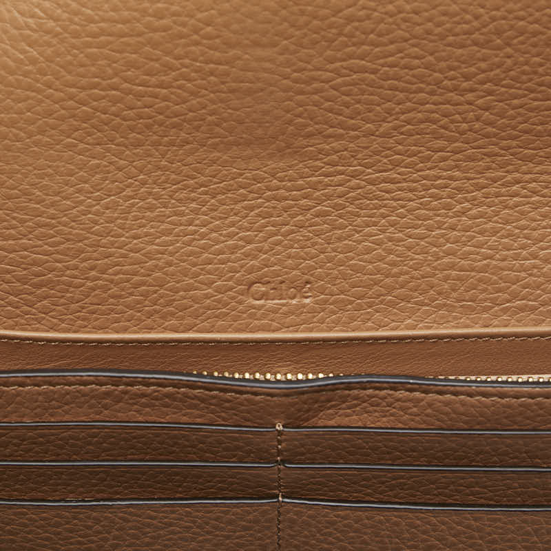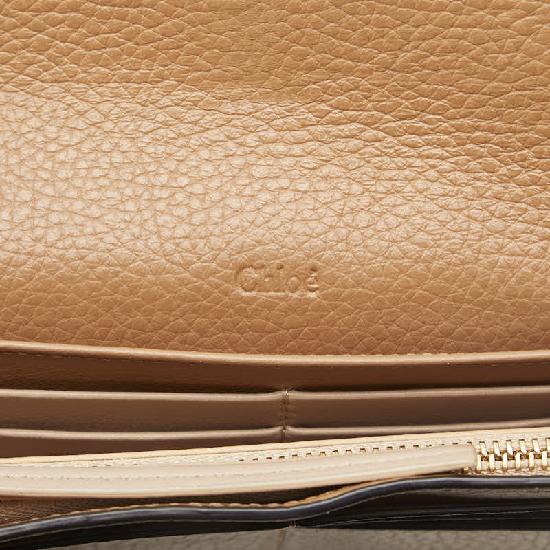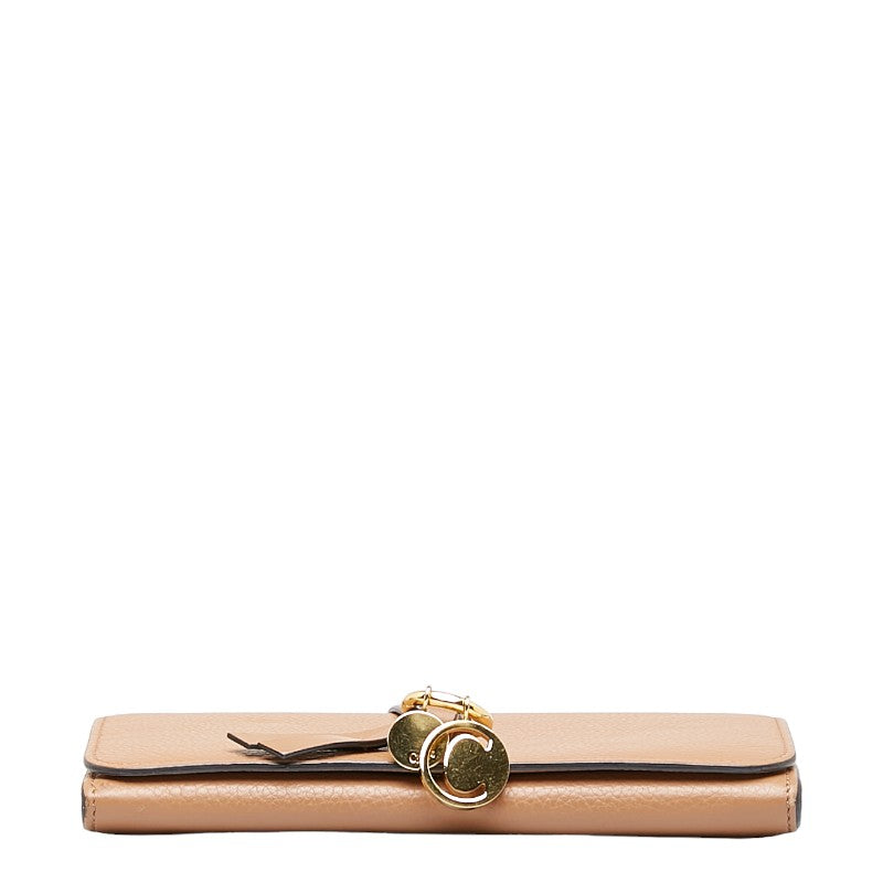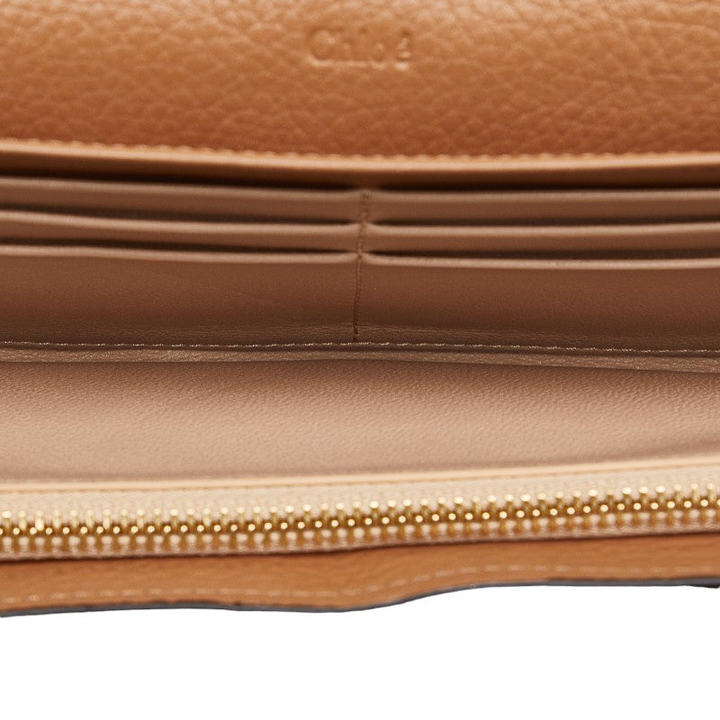 クロエ アルファベット フラップ ウォレット ロゴチャーム ゴールド金具 長財布 ブラウン レザー レディース Chloe 【中古】