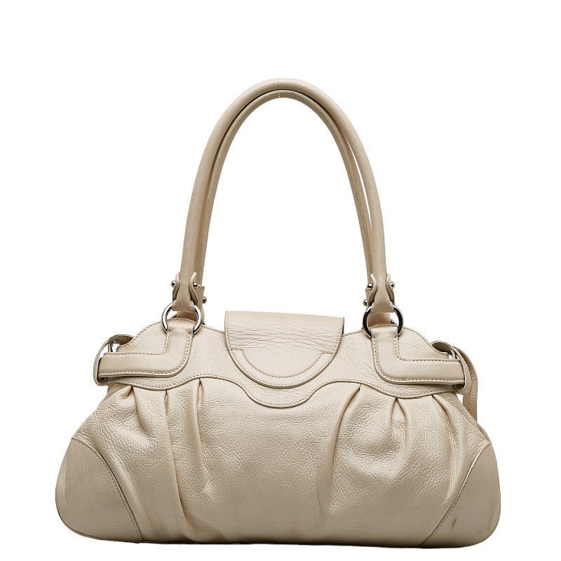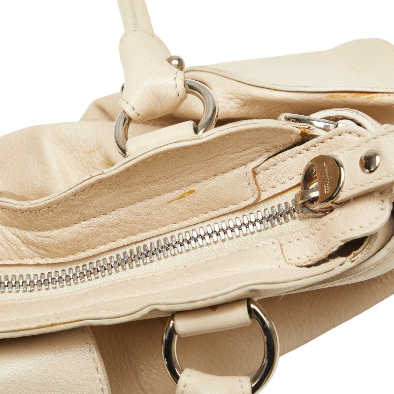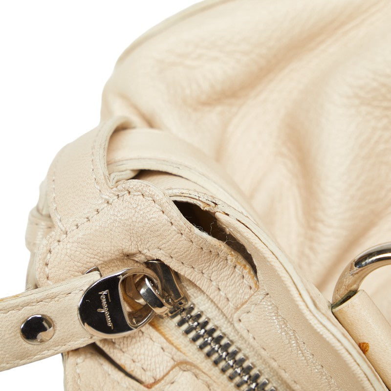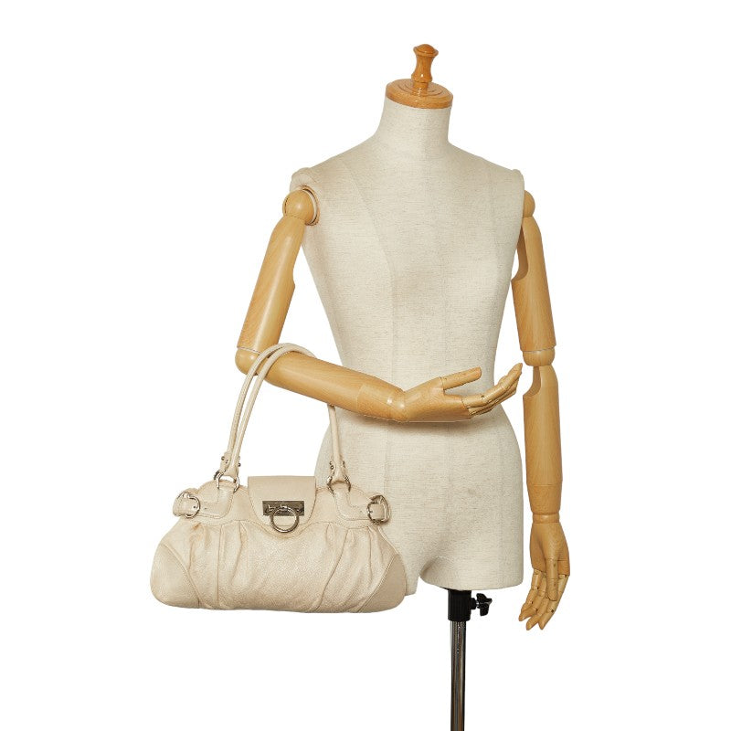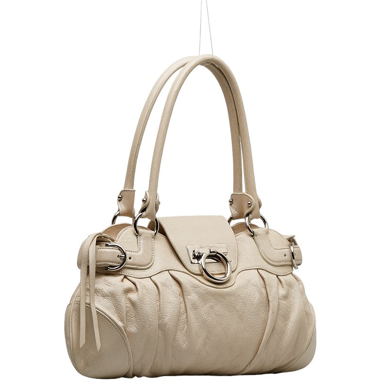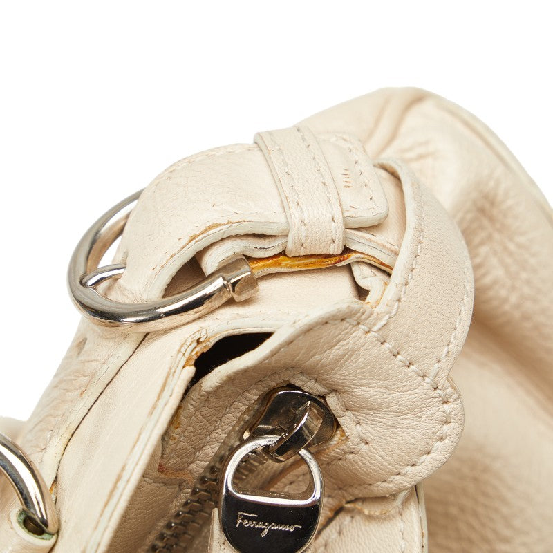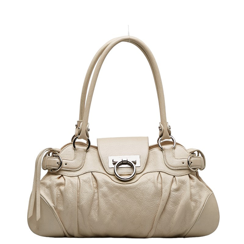 サルヴァトーレフェラガモ ガンチーニ ハンドバッグ AU-21 6317 ホワイト レザー レディース Salvatore Ferragamo 【中古】