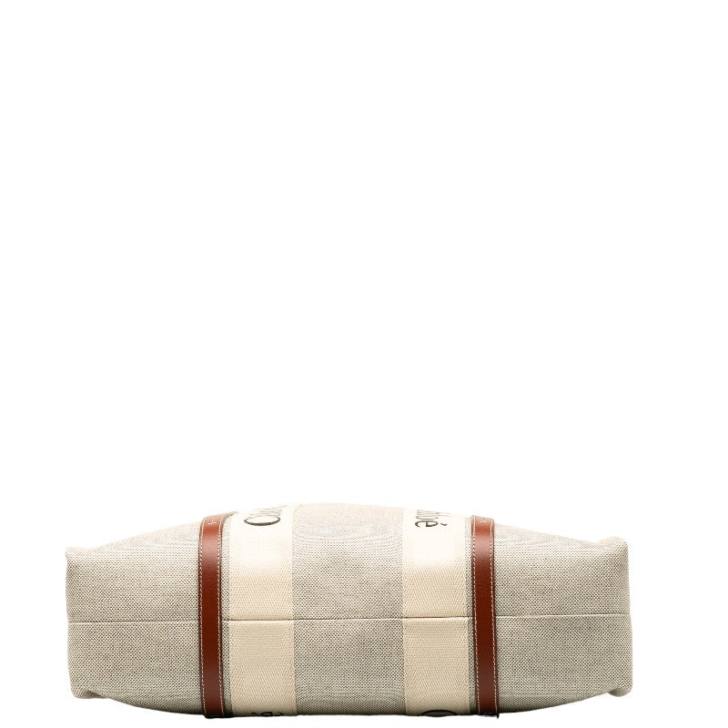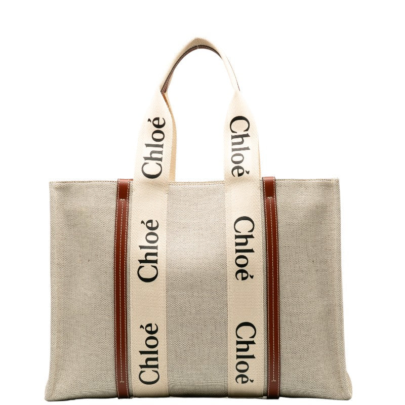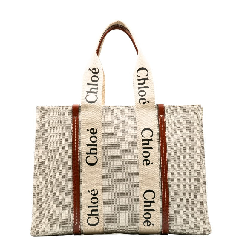 クロエ ウッディラージ トートバッグ CHC22AS アイボリー ブラウン キャンバス レザー レディース Chloe 【中古】