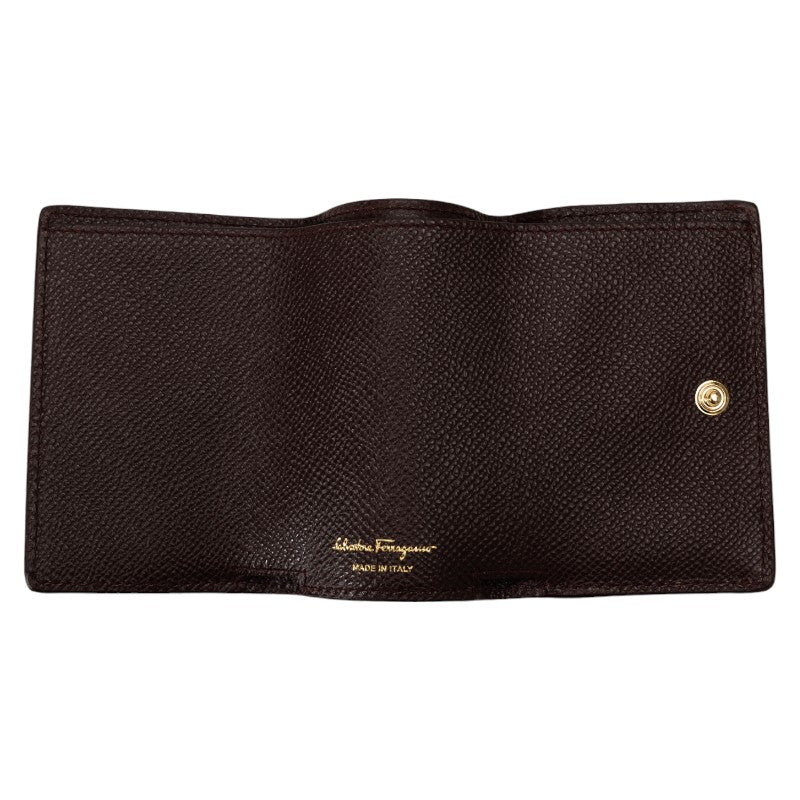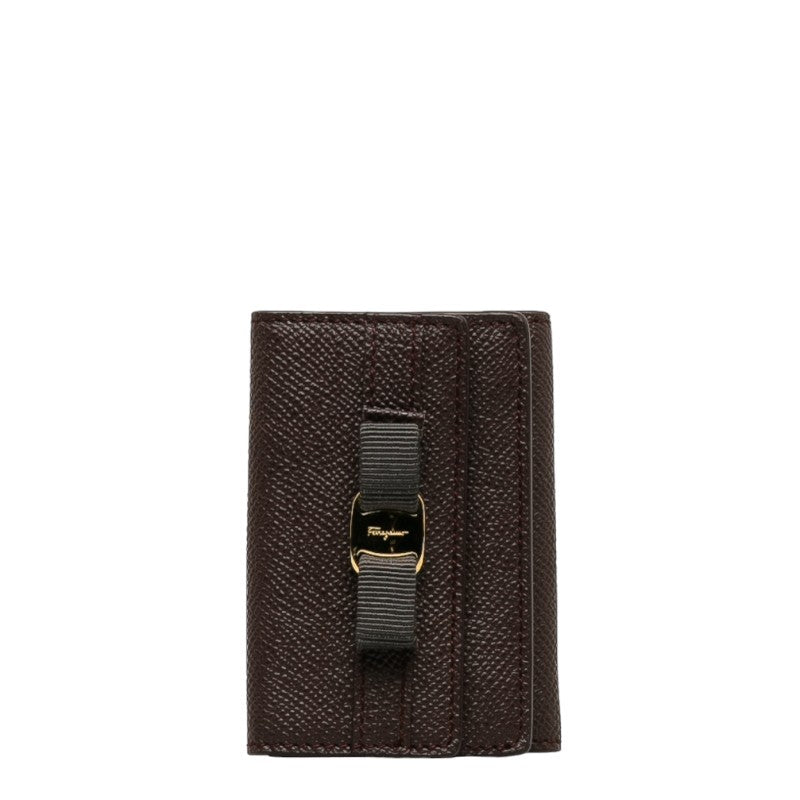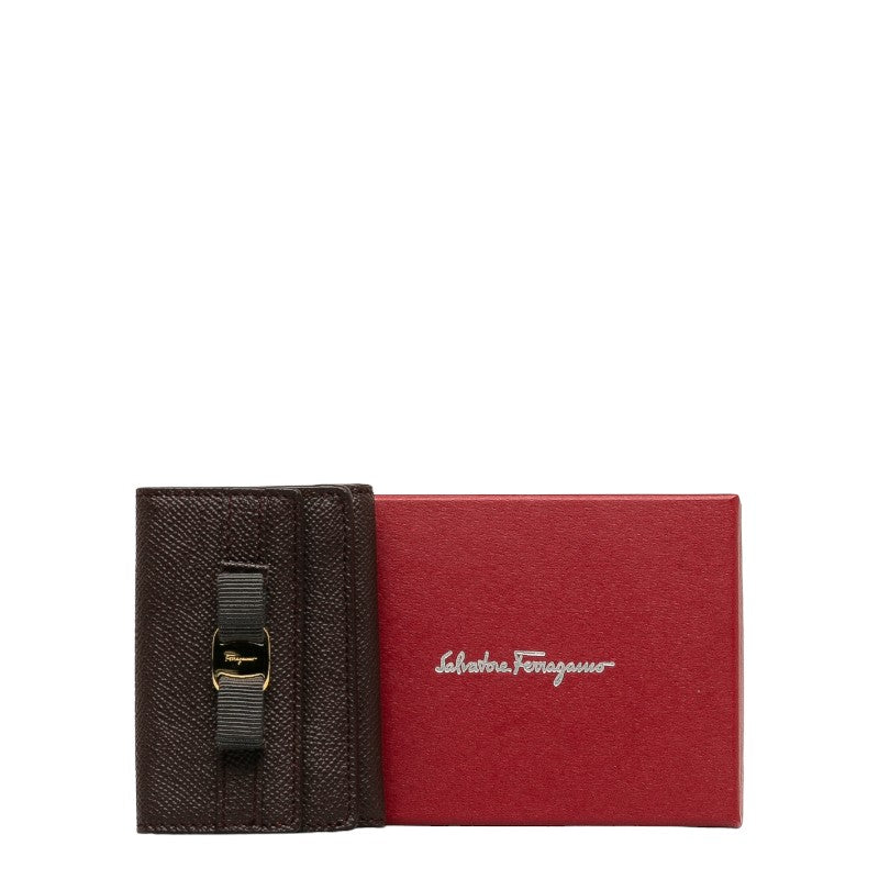 サルヴァトーレフェラガモ ヴァラリボン 三つ折り財布 コンパクトウォレット JL-22 D951 ブラウン レザー レディース Salvatore Ferragamo 【中古】