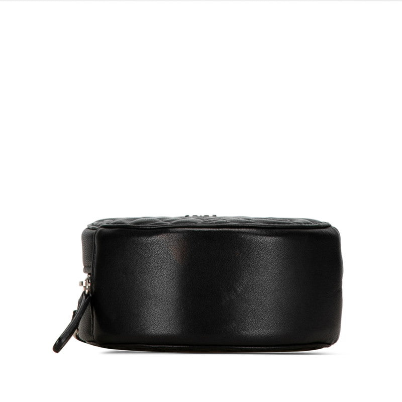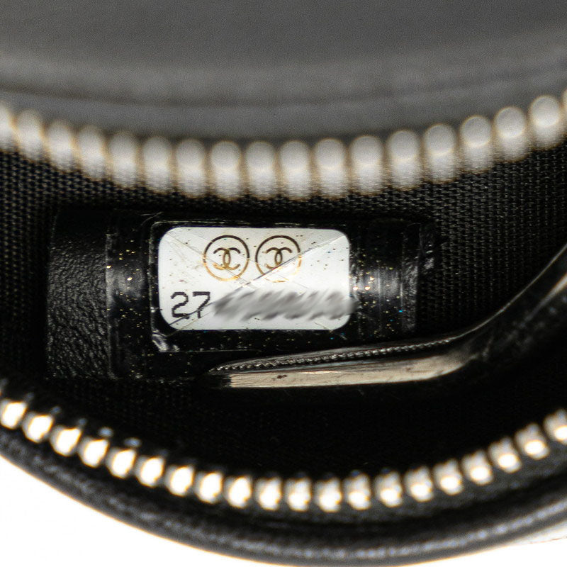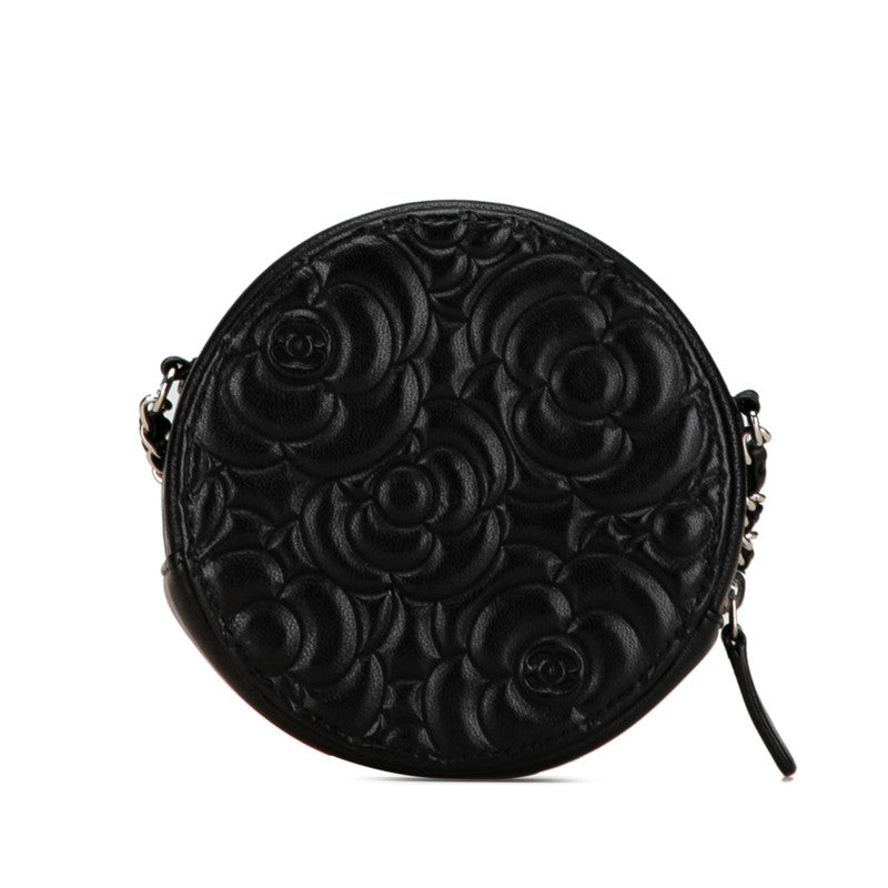 シャネル カメリア ラウンドミニ チェーン ポシェット ショルダーバッグ ブラック レザー レディース CHANEL 【中古】