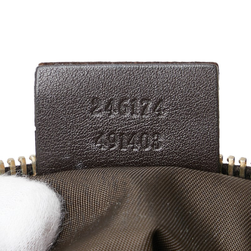 グッチ GGキャンバス バンブー ポーチ 246174 ベージュ ブラウン キャンバス レザー レディース GUCCI 【中古】