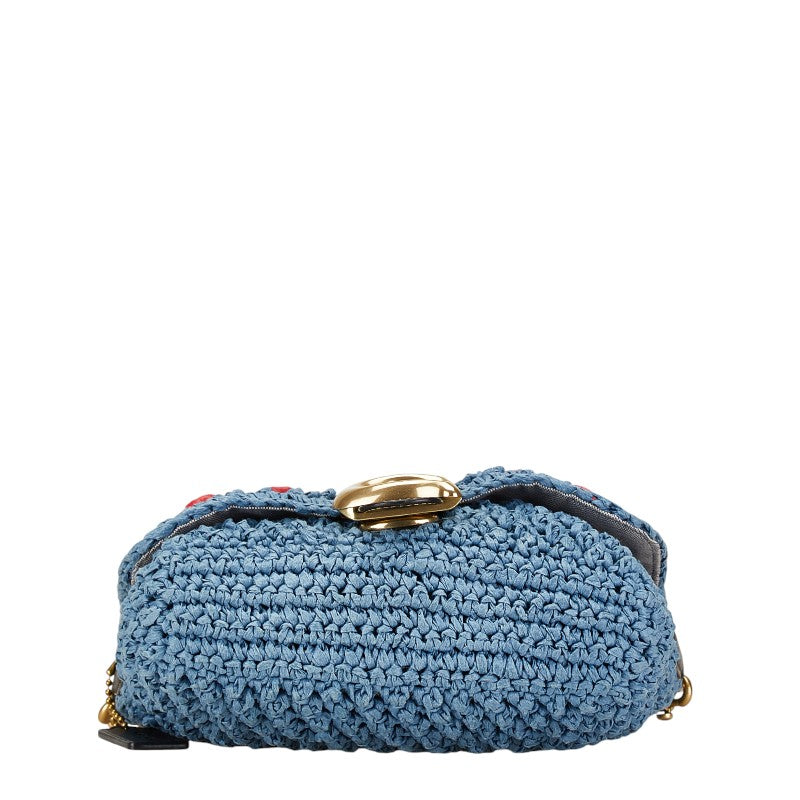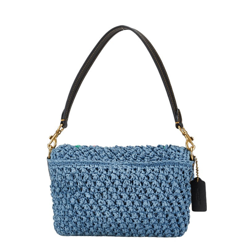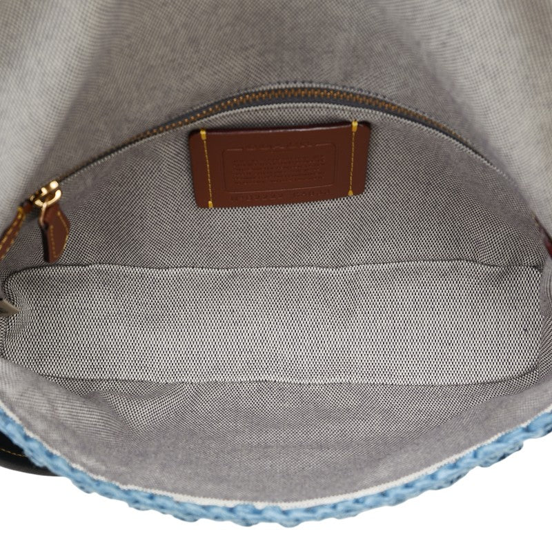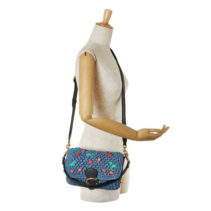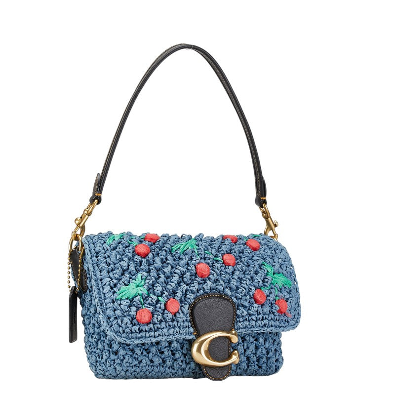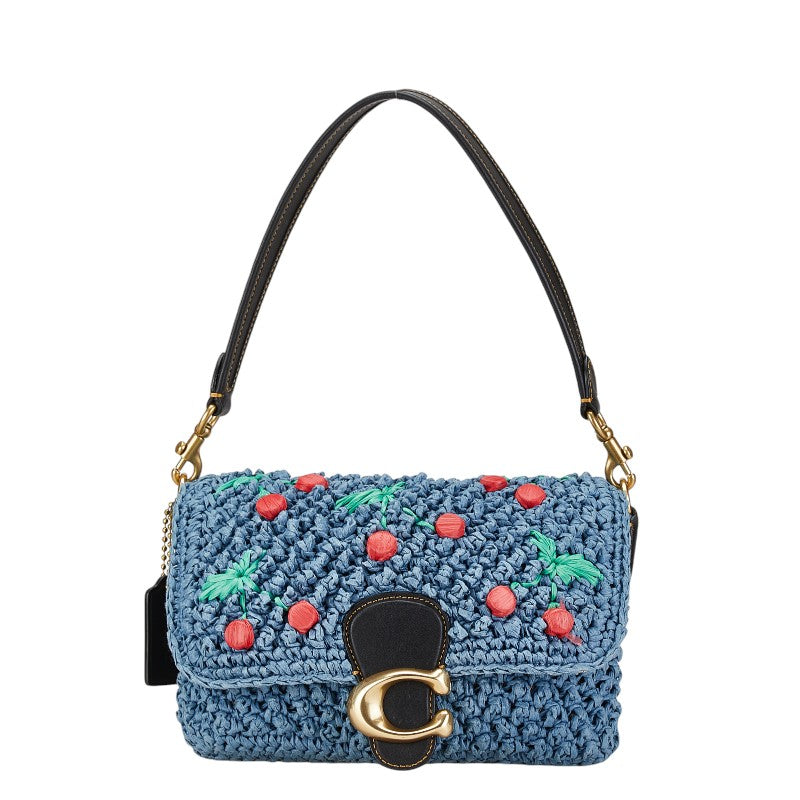 コーチ ソフトタビー エンブロイダリー チェリー ハンドバッグ ショルダーバッグ 2WAY CA033 ブルー ブラック ストロー レザー レディース COACH 【中古】