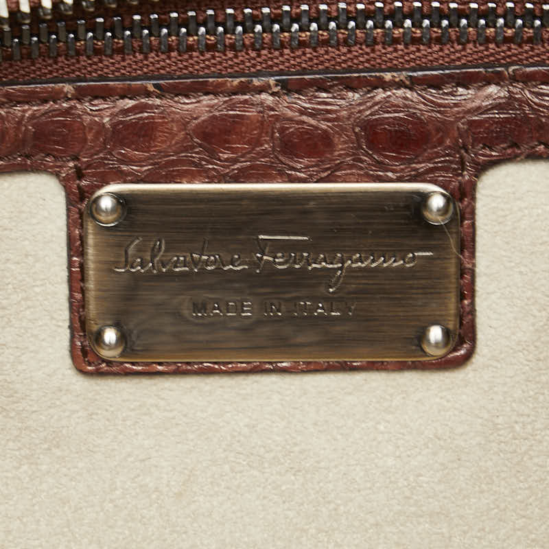 サルヴァトーレフェラガモ ガンチーニ ハンドバッグ ショルダーバッグ 2WAY ブラウン パイソン レディース Salvatore Ferragamo 【中古】