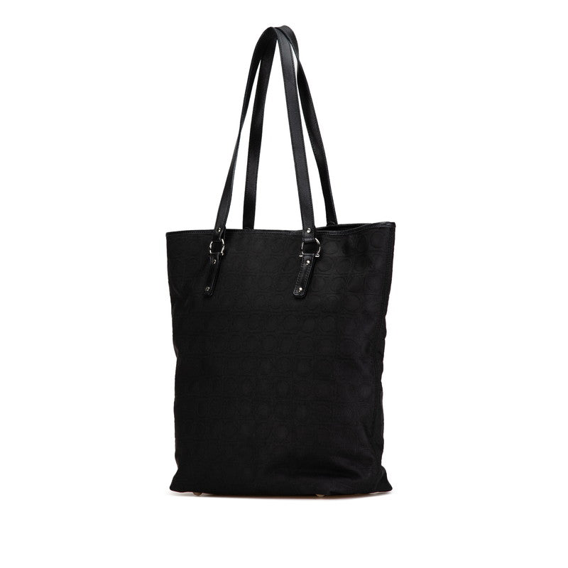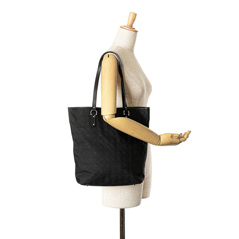 サルヴァトーレフェラガモ ガンチーニ トートバッグ AU-21 4909 ブラック キャンバス レザー レディース Salvatore Ferragamo 【中古】