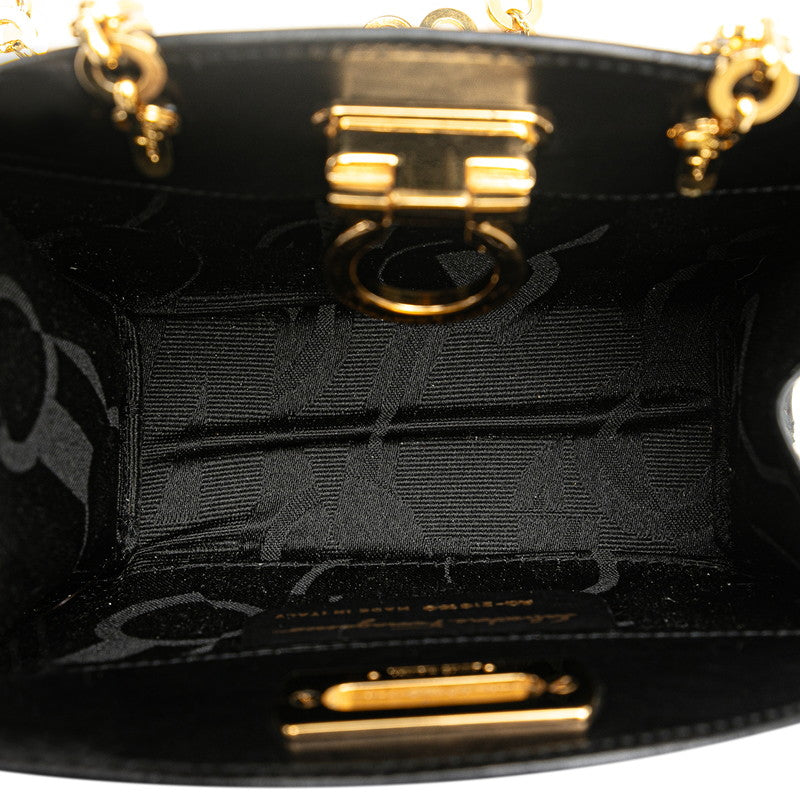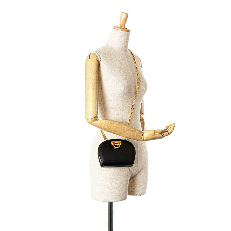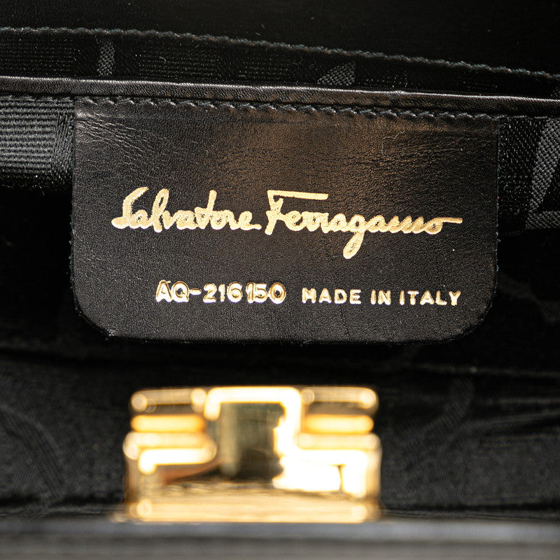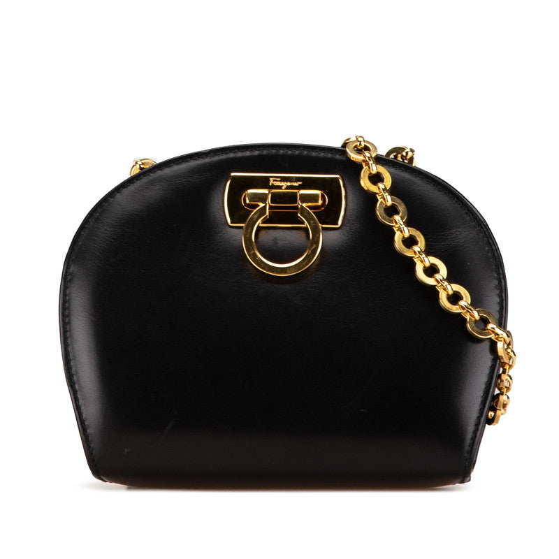 サルヴァトーレフェラガモ ガンチーニ ミニ チェーン ショルダーバッグ AQ-216150 ブラック ゴールド レザー レディース Salvatore Ferragamo 【中古】