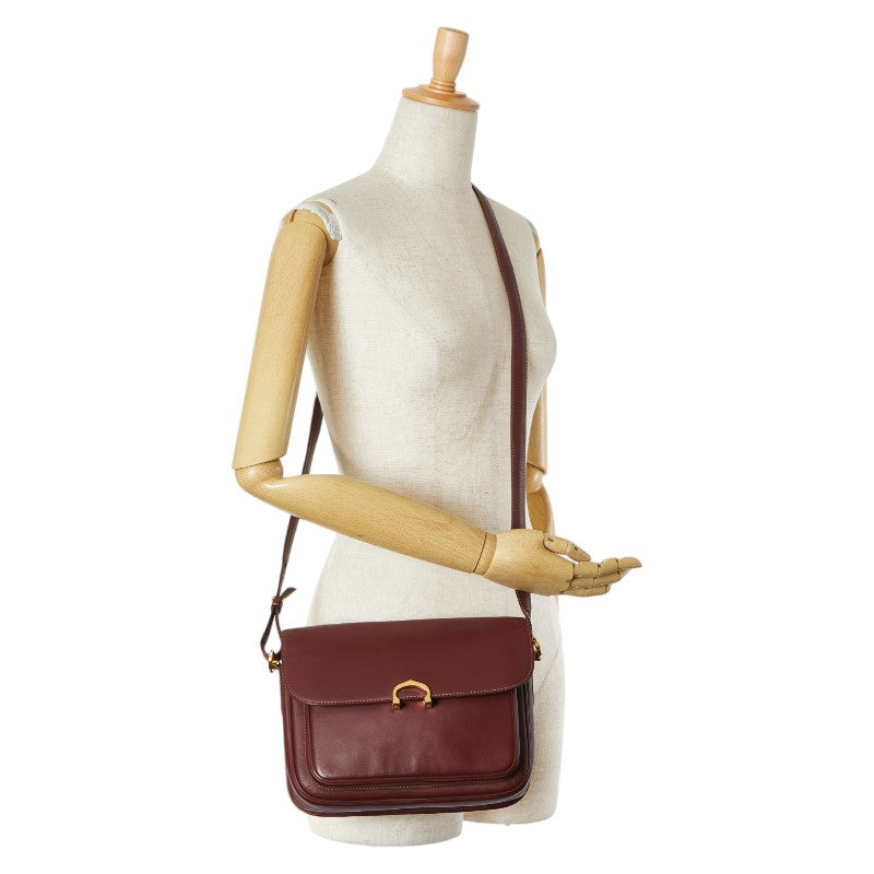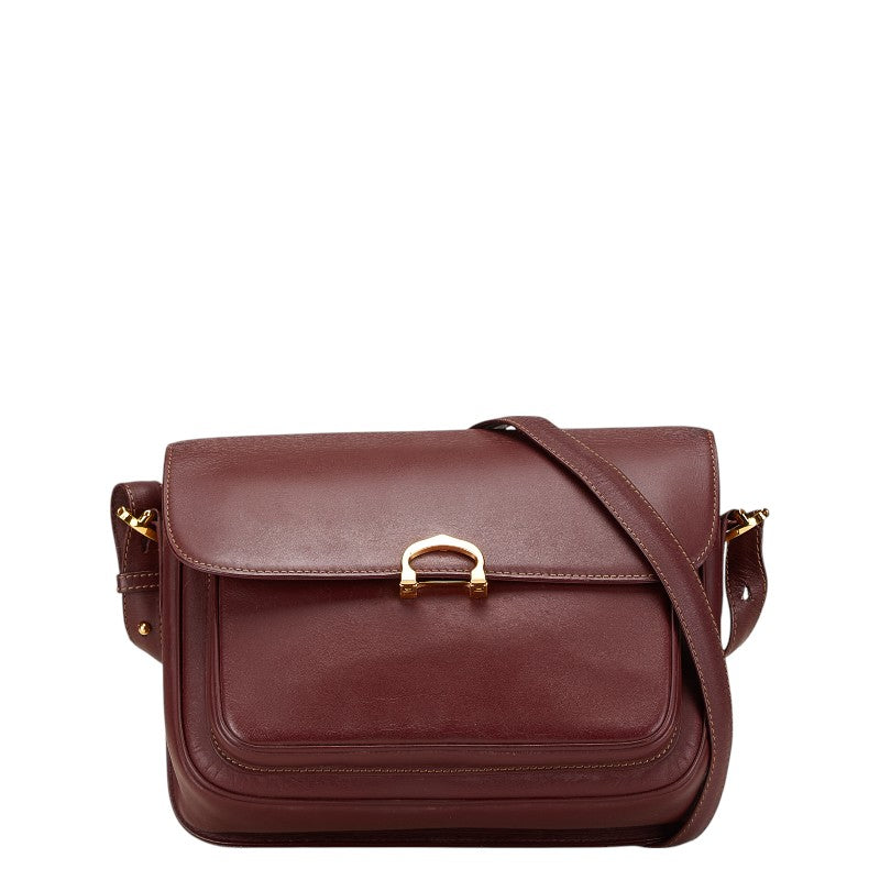 カルティエ マストライン 斜め掛け ショルダーバッグ ワインレッド ボルドー レザー レディース CARTIER 【中古】