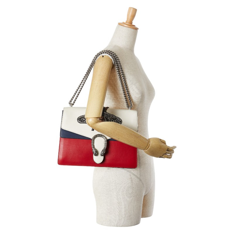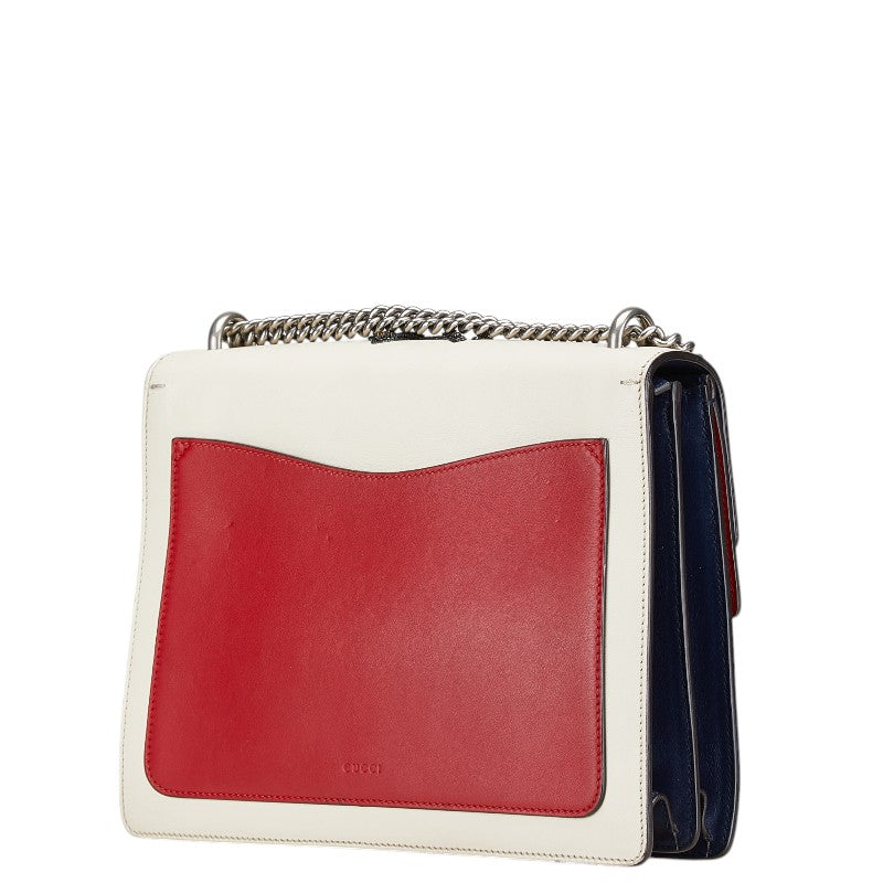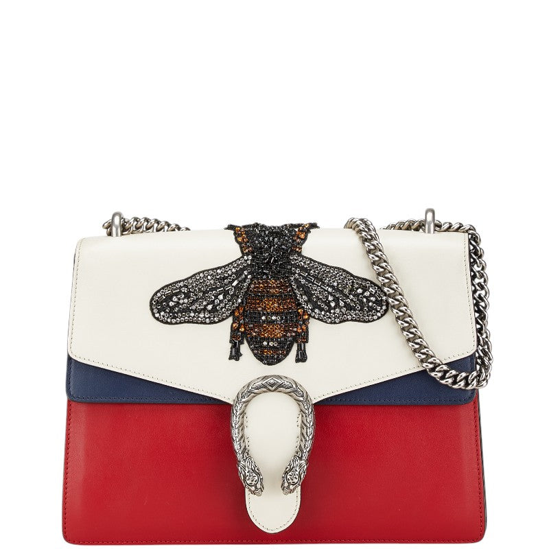 グッチ デュオニソス ビー ラインストーン チェーン ショルダーバッグ ハンドバッグ 403348 レッド ホワイト ネイビー レザー レディース GUCCI 【中古】