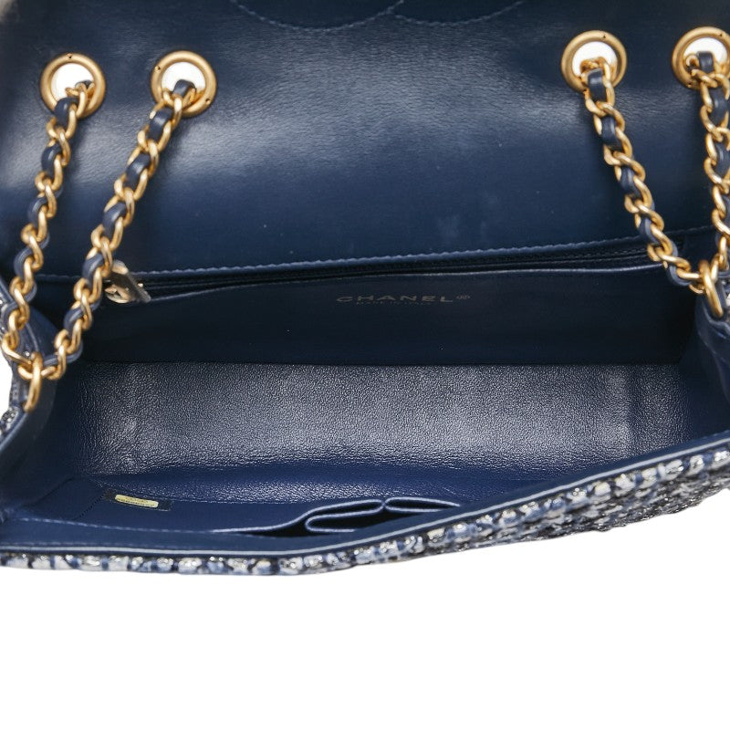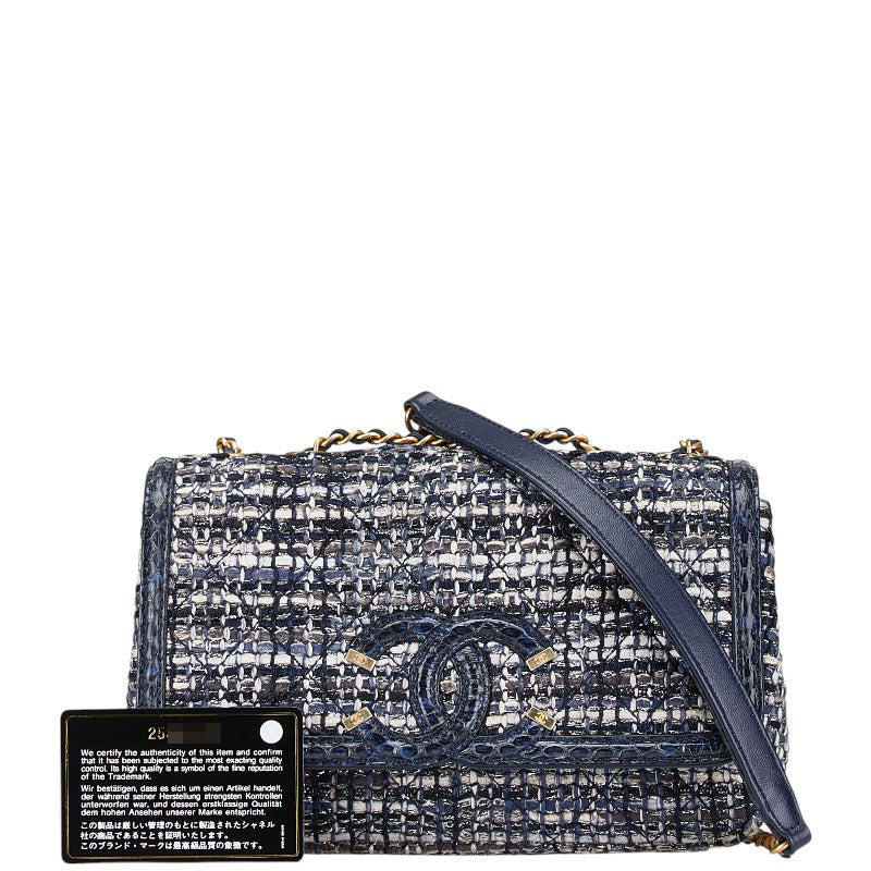 シャネル CCフィリグリー ココマーク パイソン型押し チェーン ショルダーバッグ ネイビー ツイード レザー レディース CHANEL 【中古】