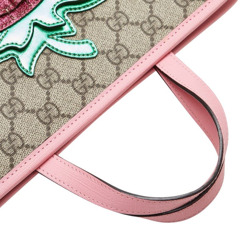 グッチ チルドレンズ GGスプリーム 3Dストロベリー トートバッグ ハンドバッグ 630589 ベージュ ピンク マルチカラー PVC レザー レディース GUCCI 【中古】