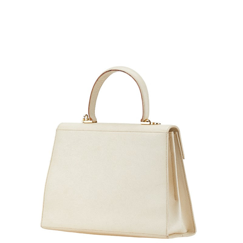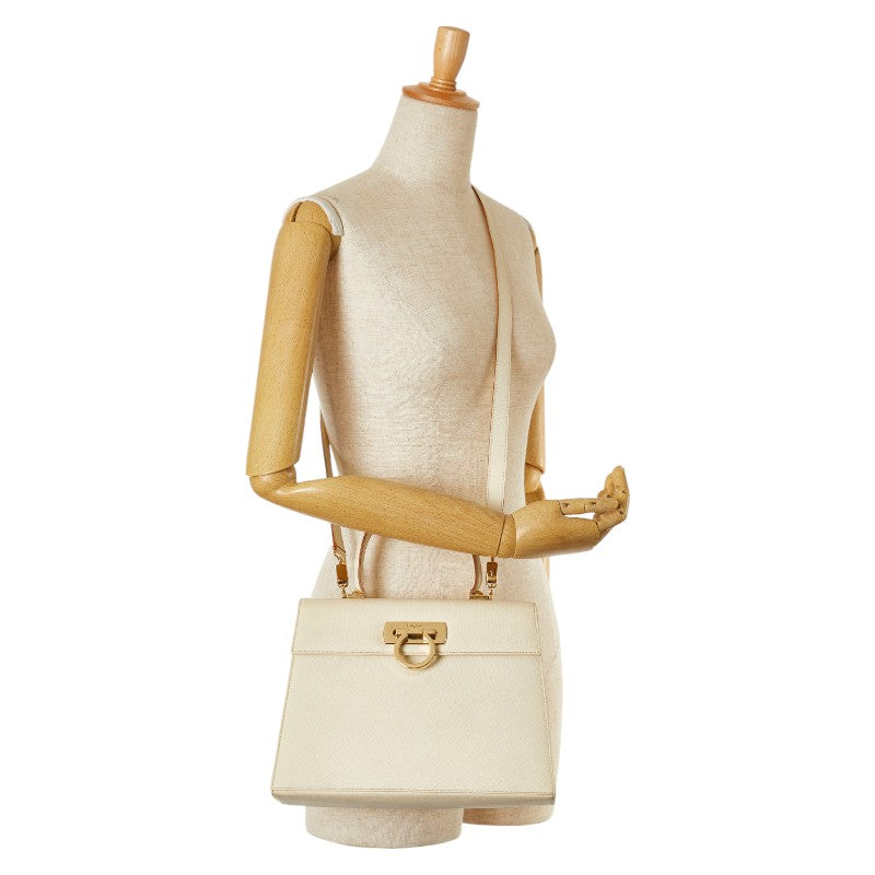 サルヴァトーレフェラガモ ガンチーニ ハンドバッグ ショルダーバッグ 2WAY アイボリー ホワイト レザー レディース Salvatore Ferragamo 【中古】