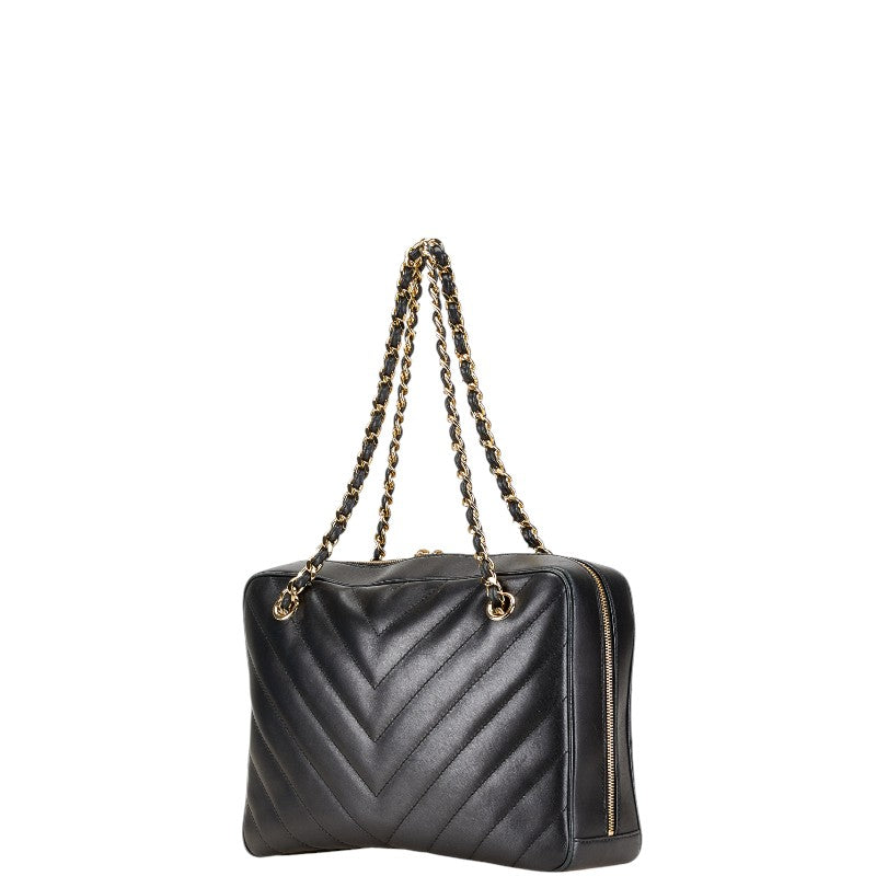シャネル Vステッチ ココマーク チェーン ショルダーバッグ ブラック ラムスキン レディース CHANEL 【中古】