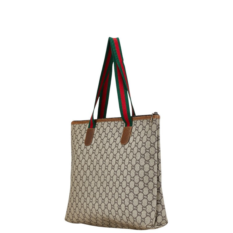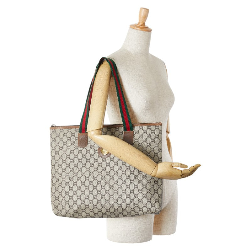 グッチ オールドグッチ GGプラス シェリーライン トートバッグ ベージュ ブラウン マルチカラー PVC レザー キャンバス レディース GUCCI 【中古】