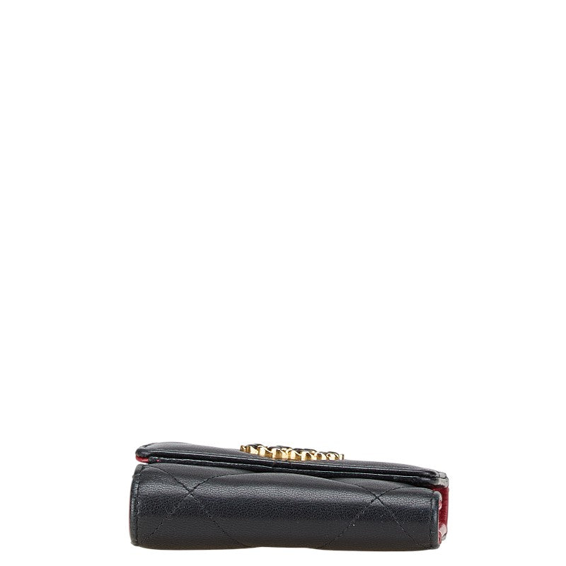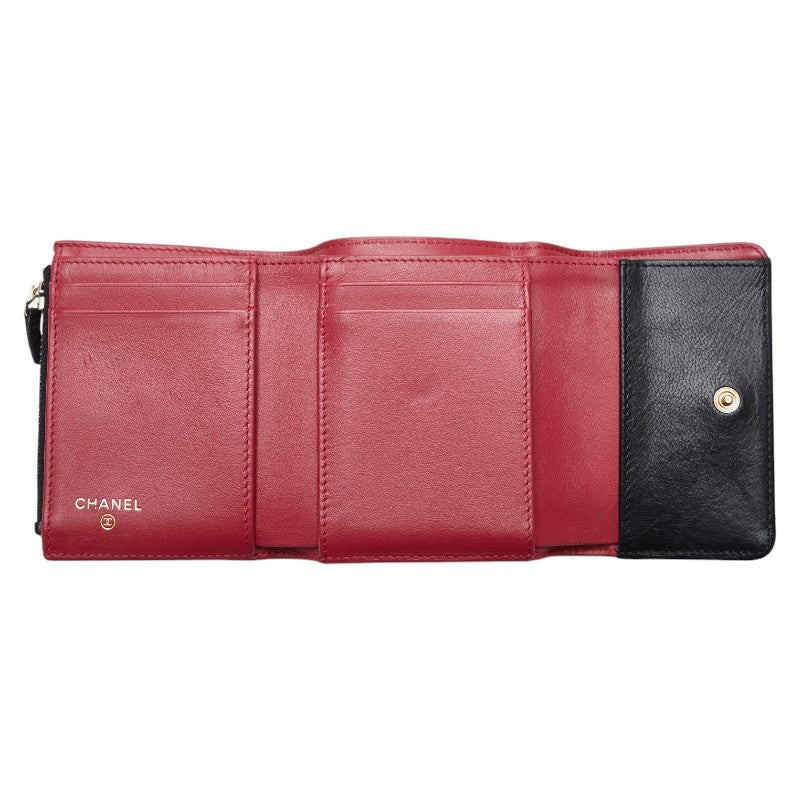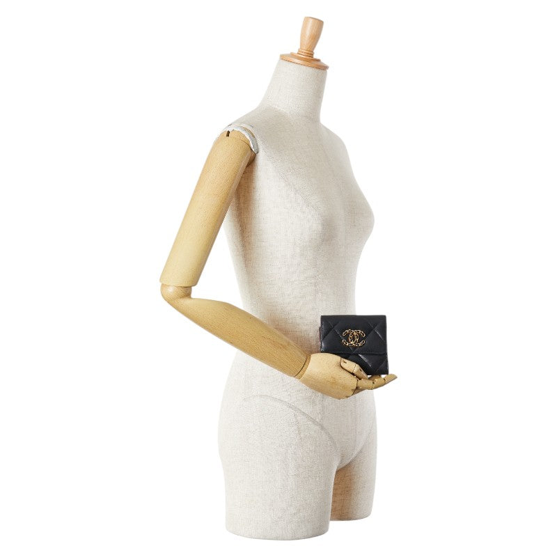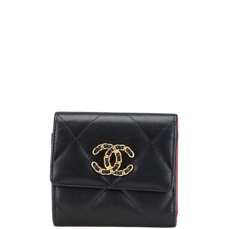 シャネル 19 ココマーク 三つ折り財布 スモールフラップウォレット AP1064 ブラック ピンク ラムスキン レディース CHANEL 【中古】