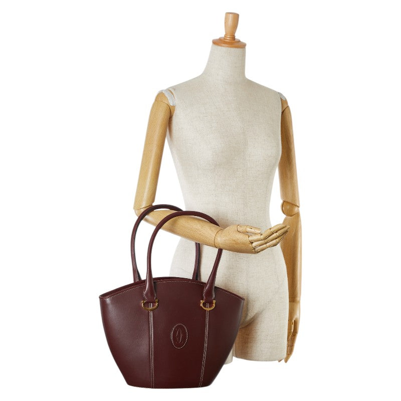 カルティエ マストライン ハンドバッグ ボルドー ワインレッド レザー レディース CARTIER 【中古】