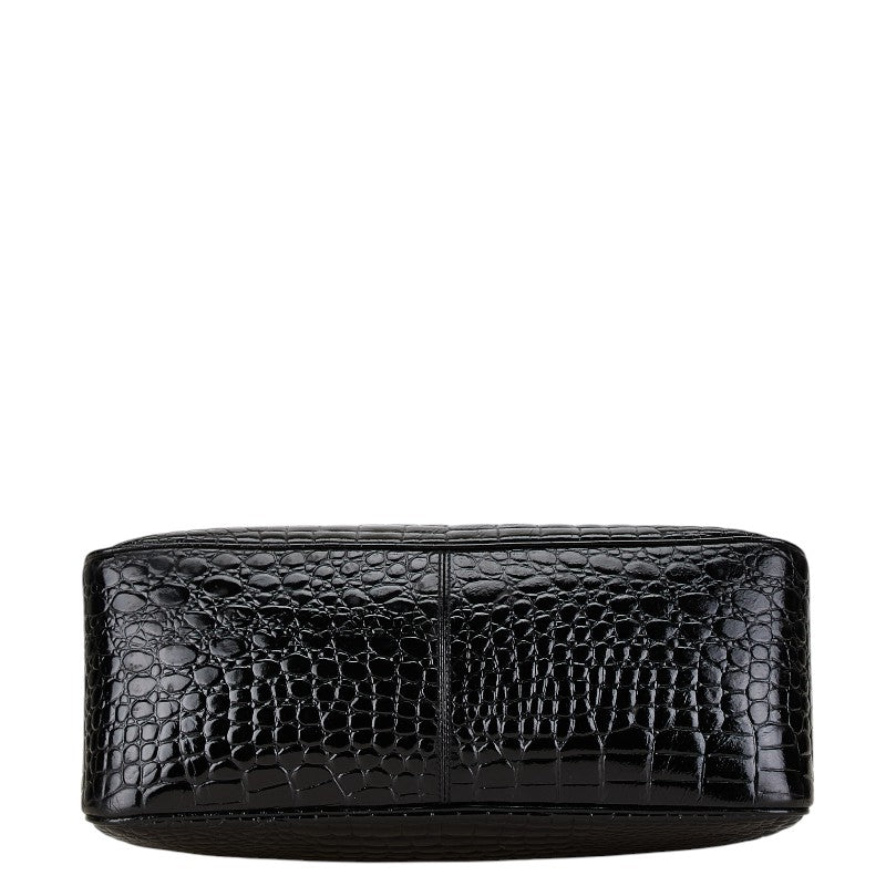 サンローラン クロコ型押し チェーン ハンドバッグ ブラック レザー レディース SAINT LAURENT 【中古】