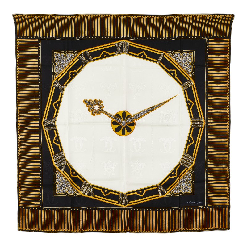 カルティエ 時計 スカーフ ブラック イエロー ホワイト シルク レディース CARTIER 【中古】