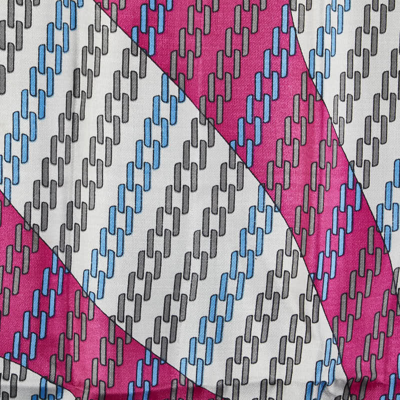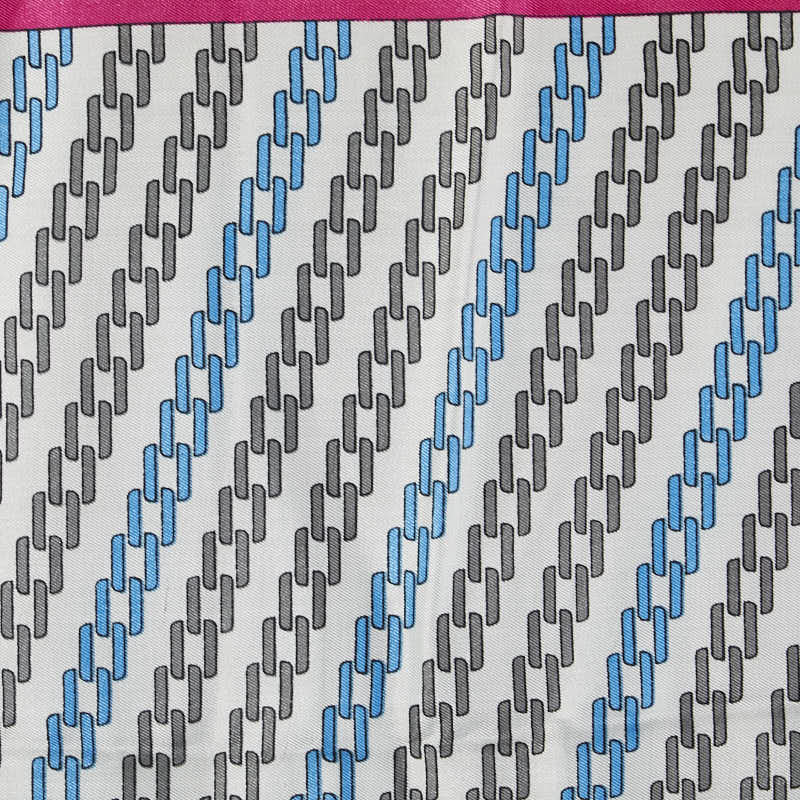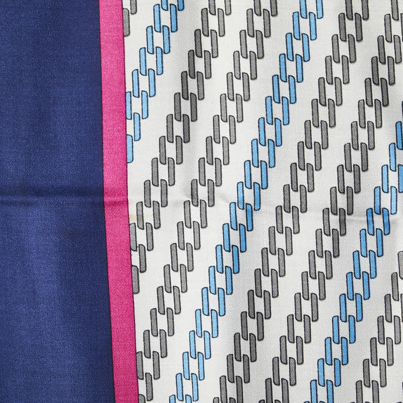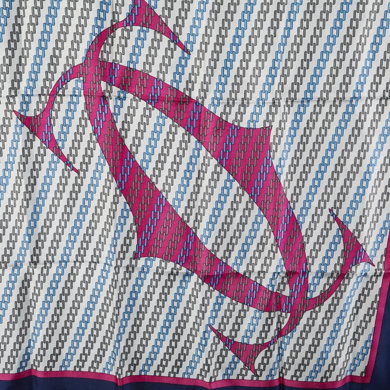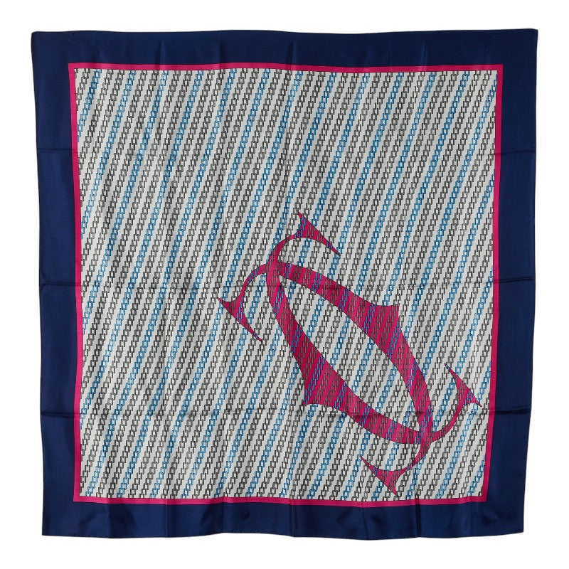 カルティエ ロゴ スカーフ ホワイト ネイビー ピンク シルク レディース CARTIER 【中古】