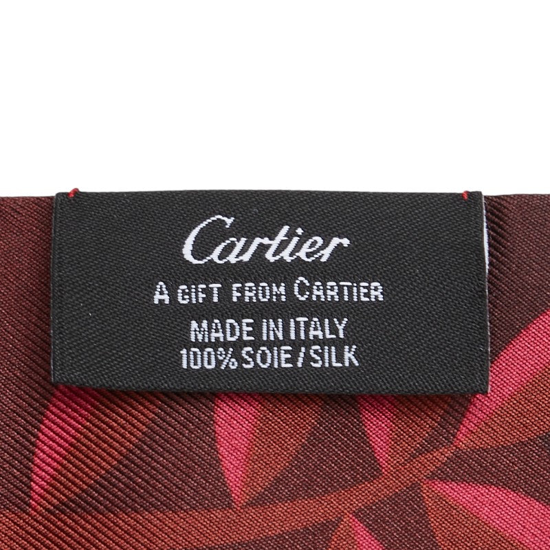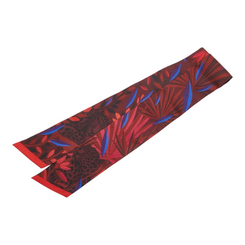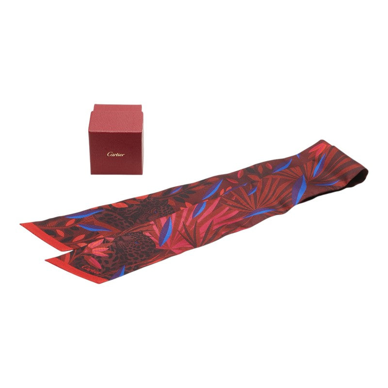 カルティエ パンテール柄 豹 ヒョウ スカーフ ワインレッド ボルドー マルチカラー シルク レディース CARTIER 【中古】