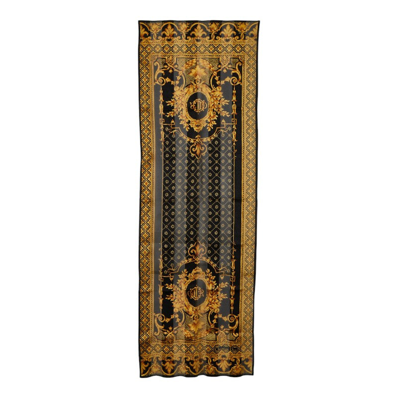 クリスチャンディオール ストール スカーフ ブラック ゴールド シルク レディース Christian Dior 【中古】