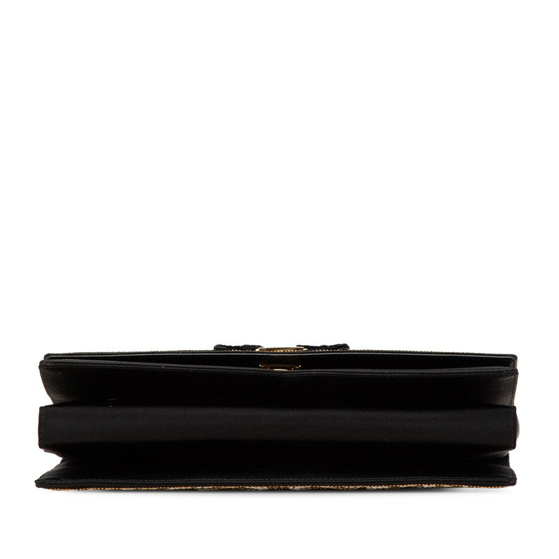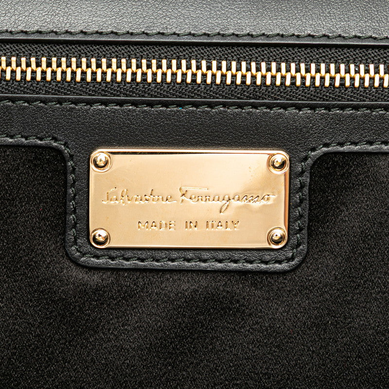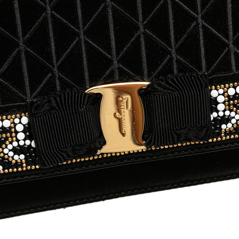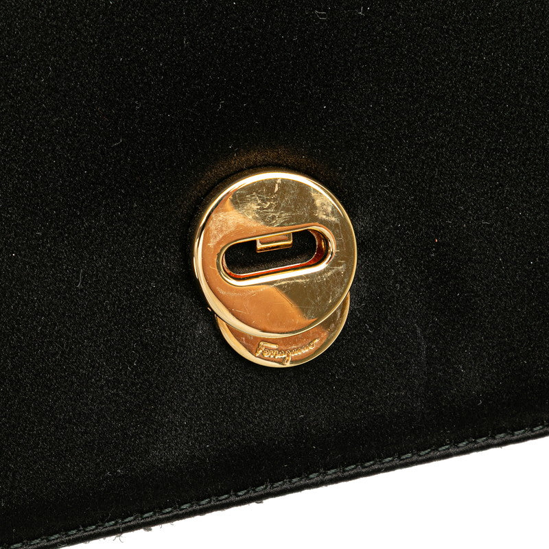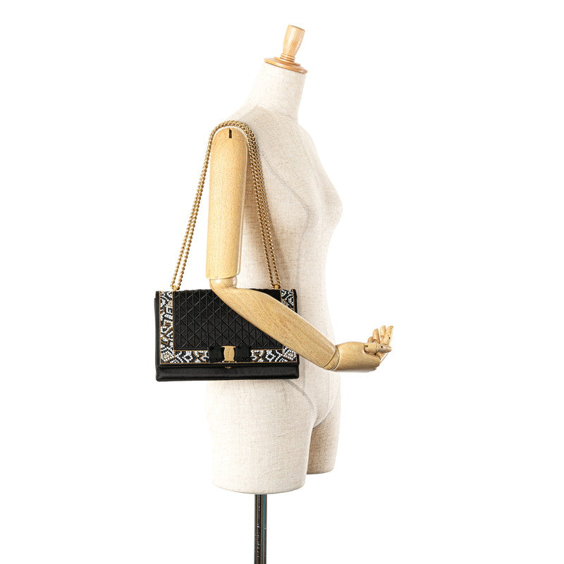 サルヴァトーレフェラガモ ヴァラリボン チェーン ショルダーバッグ ブラック サテン レザー レディース Salvatore Ferragamo 【中古】