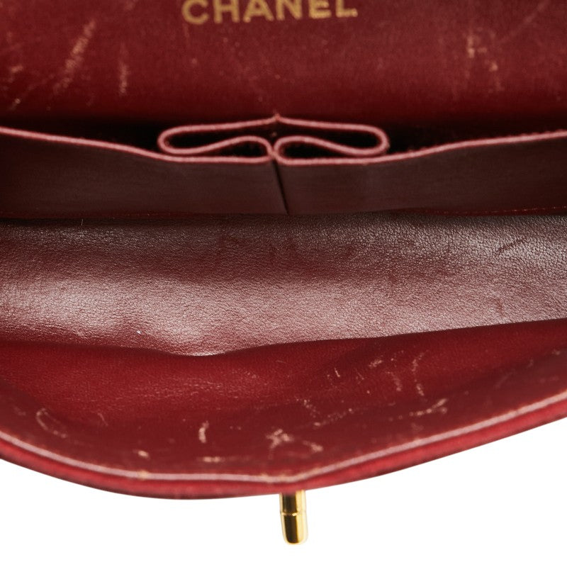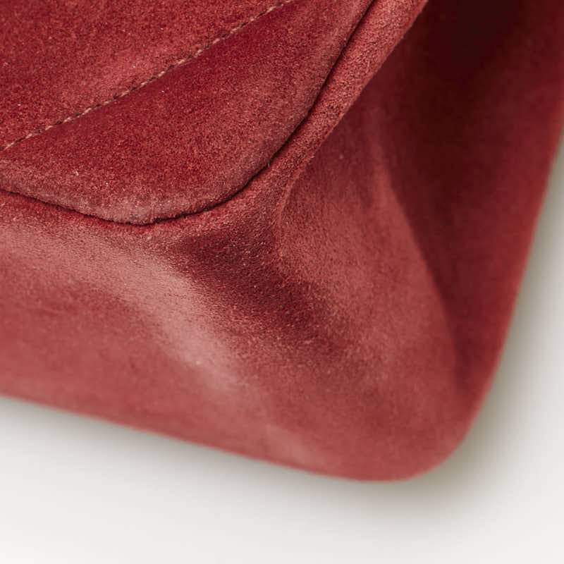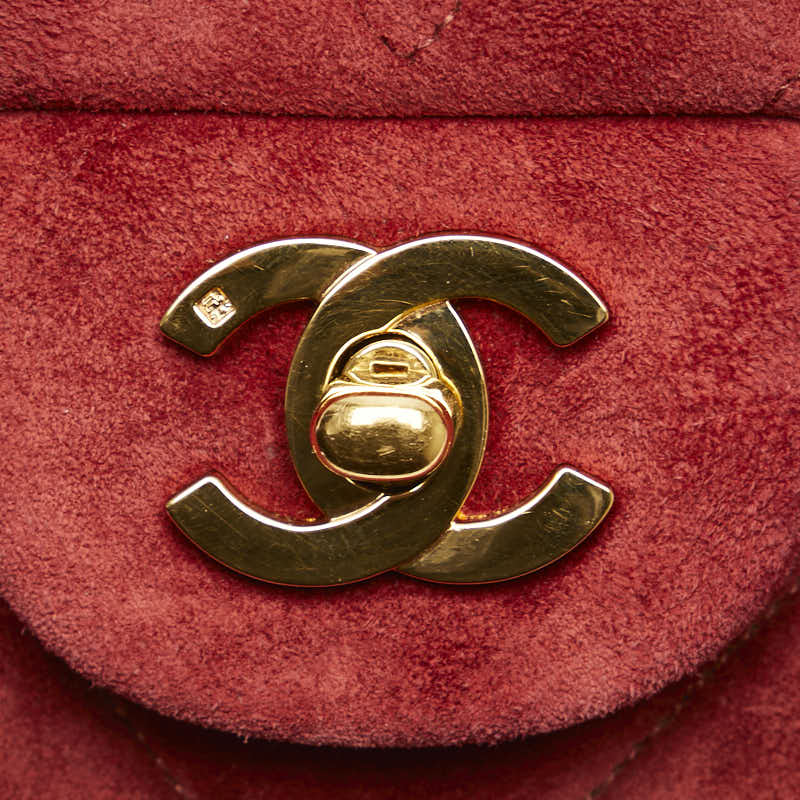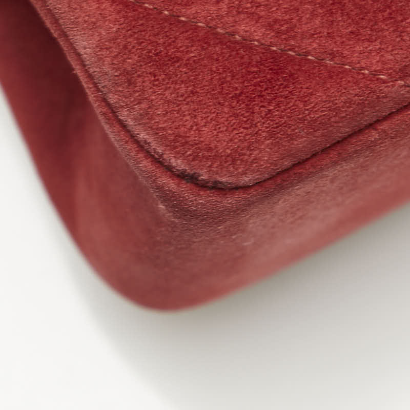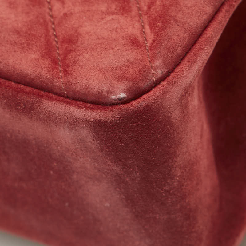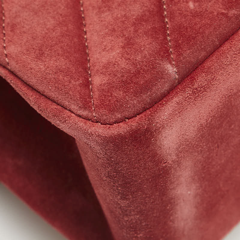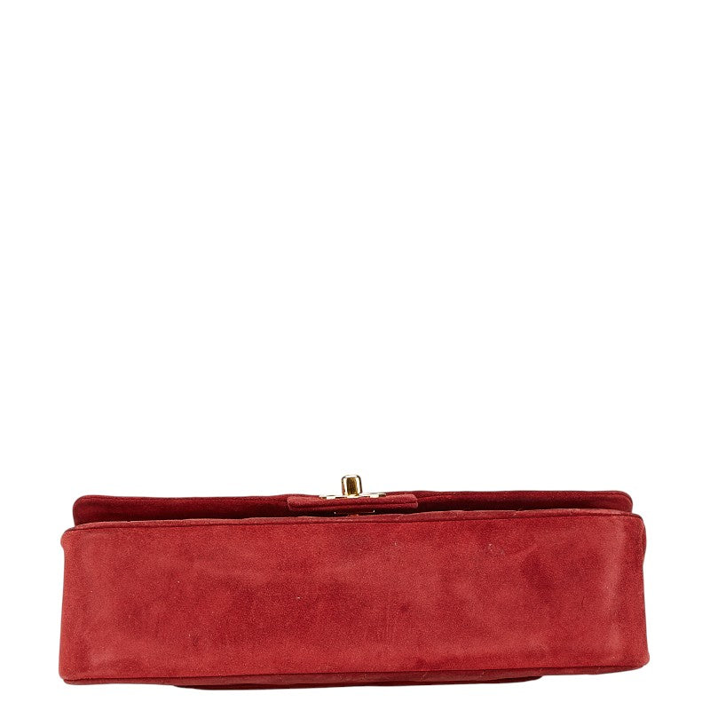 シャネル Vステッチ ダブルフラップ ココマーク チェーン ショルダーバッグ レッド スエード レディース CHANEL 【中古】