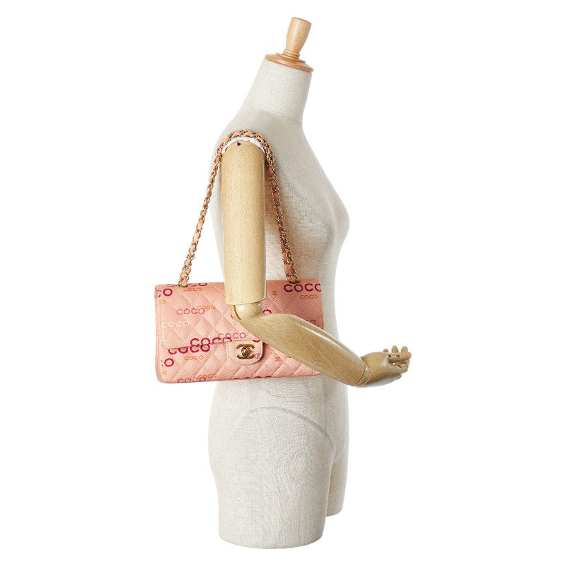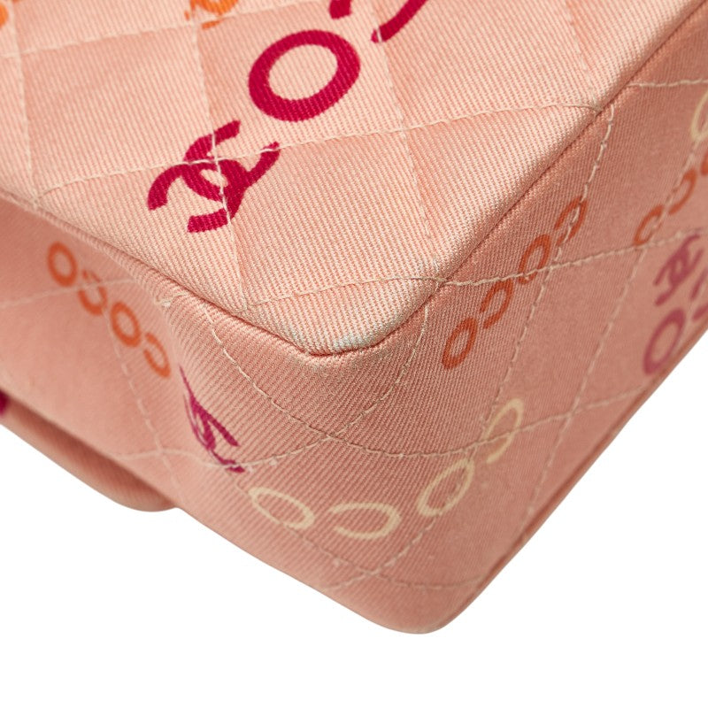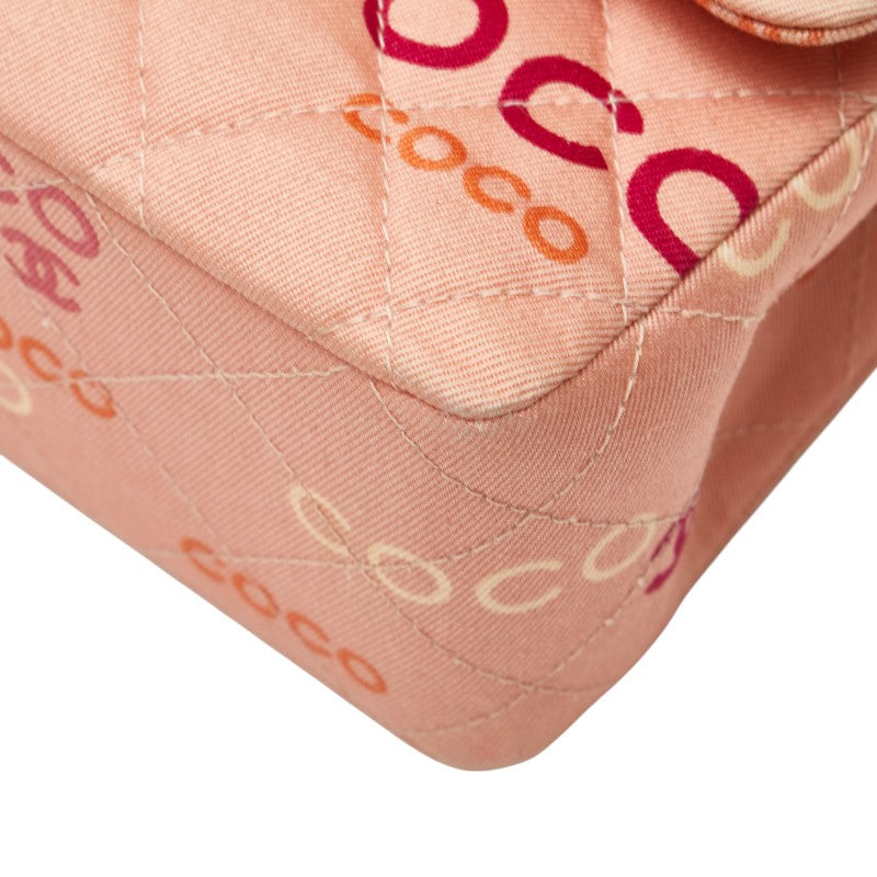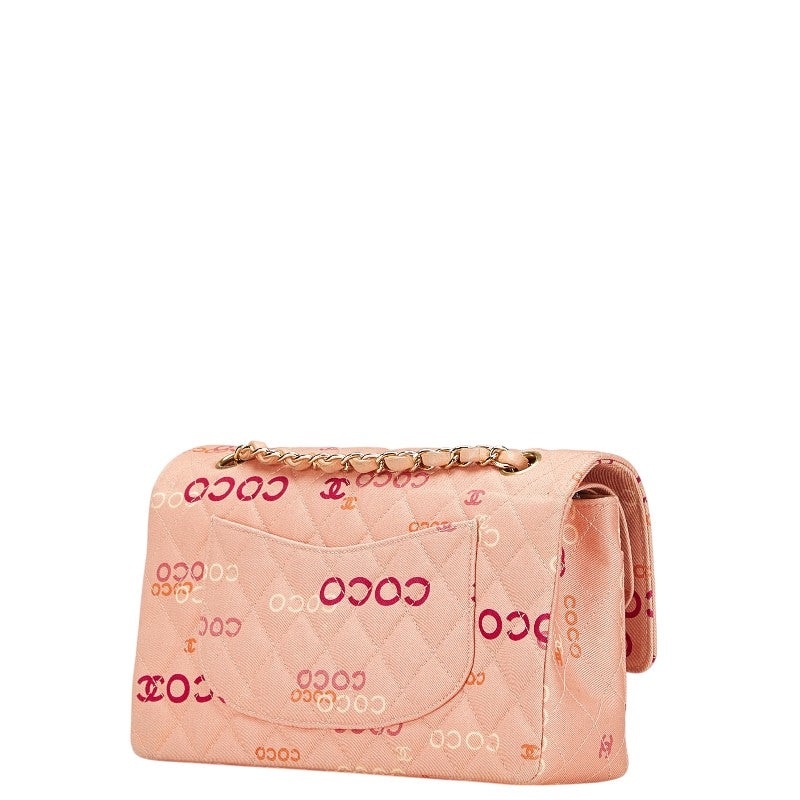 シャネル ココマーク COCOプリント ダブルフラップ チェーン ショルダーバッグ サーモンピンク マルチカラー キャンバス レディース CHANEL 【中古】
