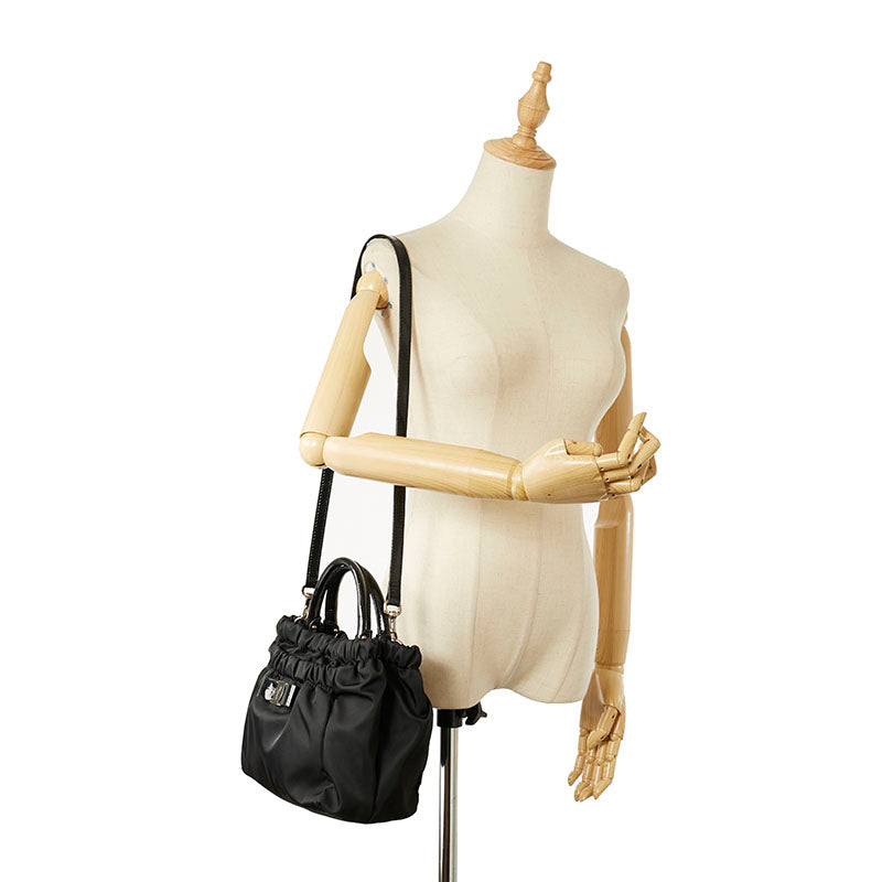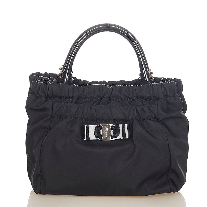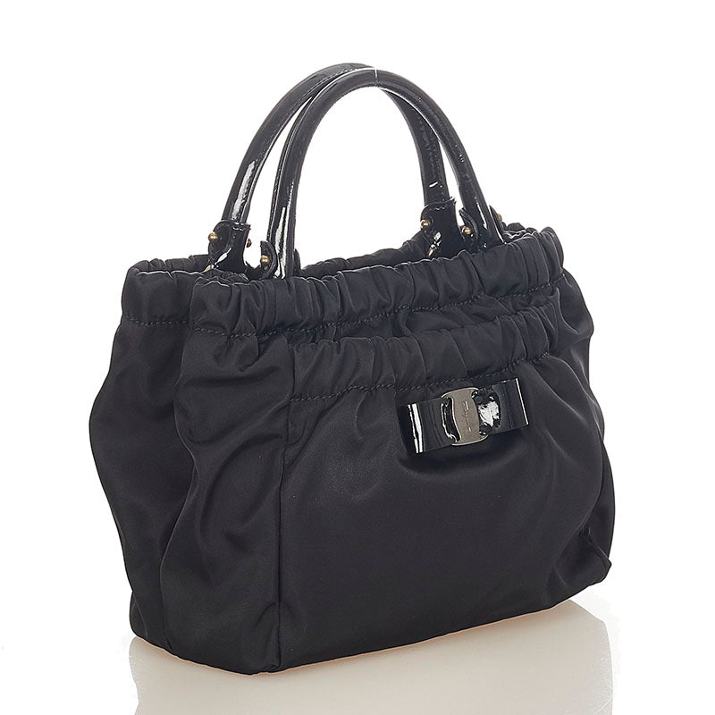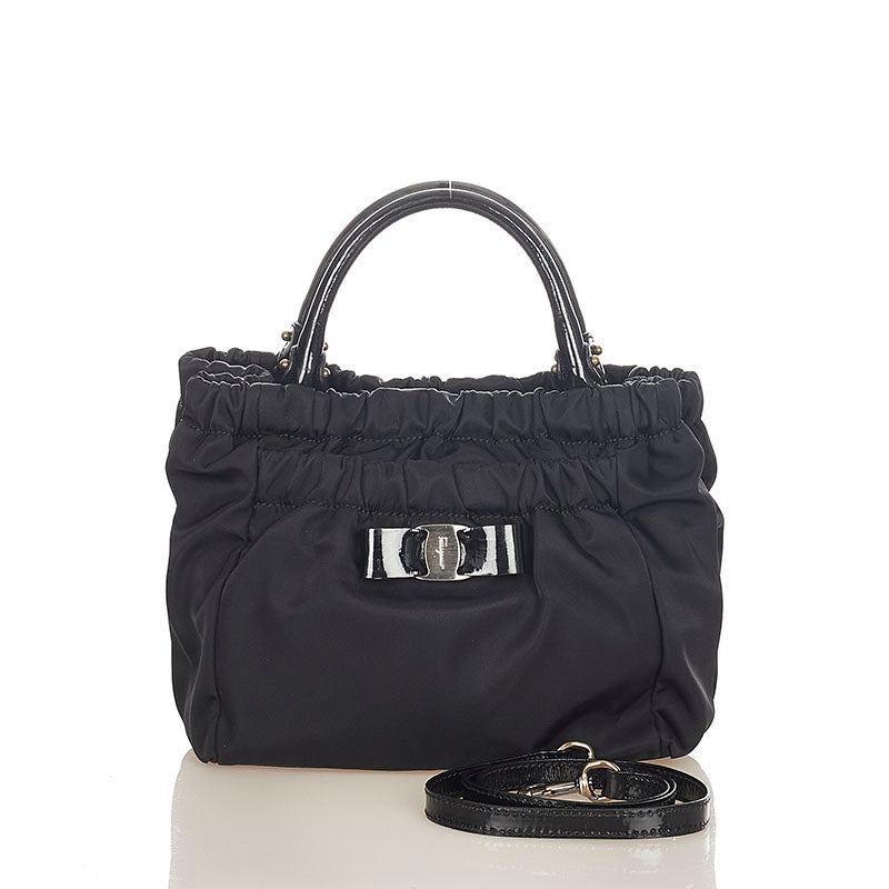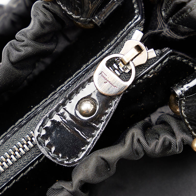 サルヴァトーレフェラガモ ヴァラリボン ブラック ナイロン パテントレザー ハンドバッグ ショルダーバッグ 2WAY レディース Salvatore Ferragamo 【中古】