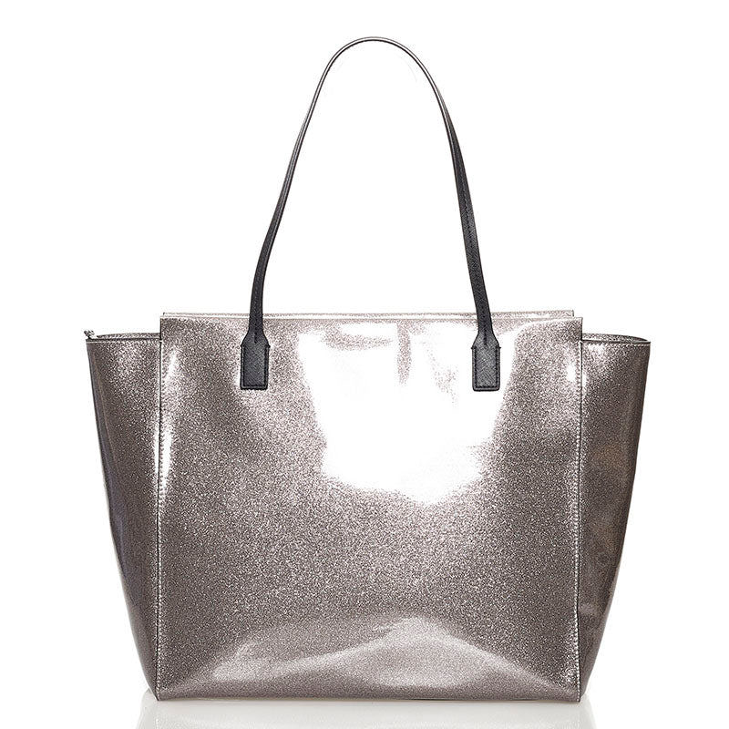 ケイトスペード リボン トートバッグ シルバー ラメ PVC レザー レディース Kate Spade 【中古】