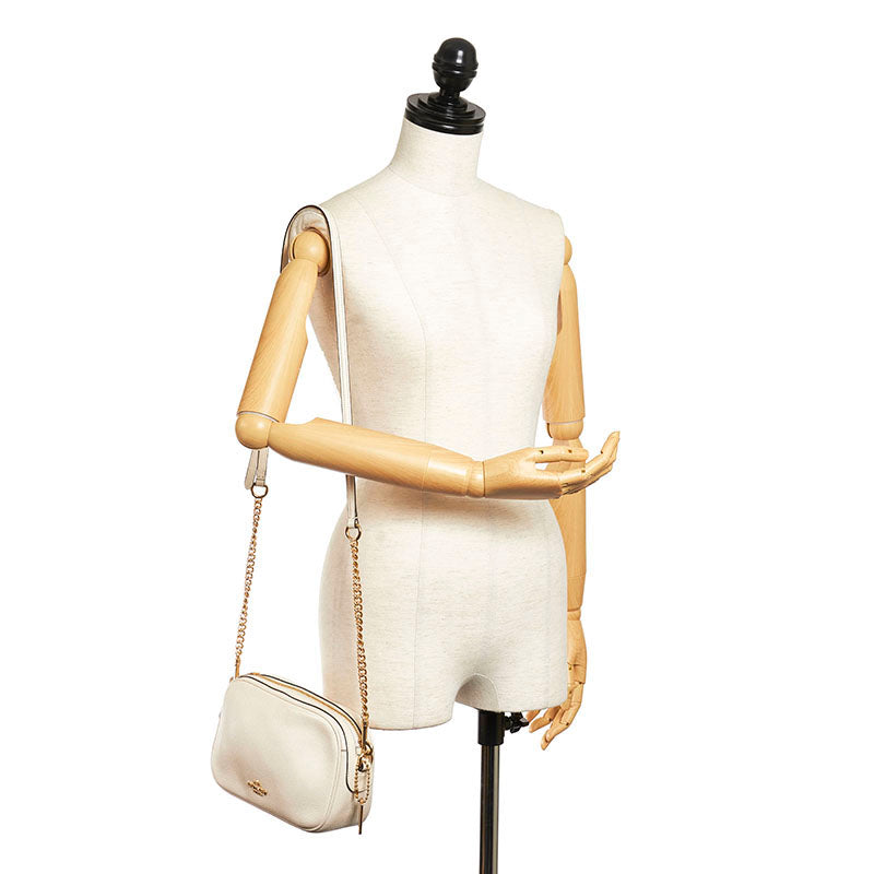 コーチ 斜め掛け チェーン ショルダーバッグ F25922 ホワイト レザー レディース COACH 【中古】