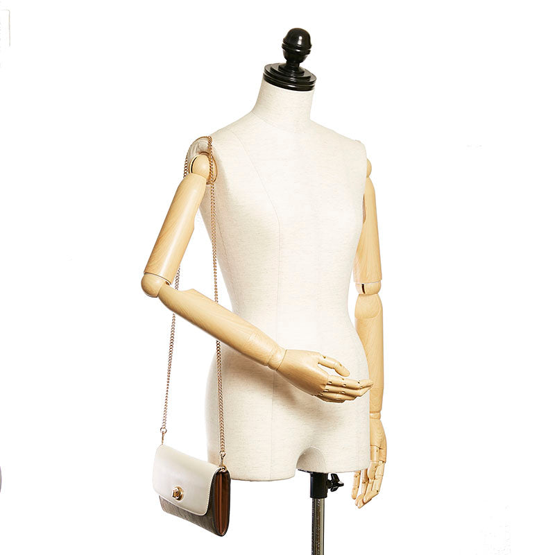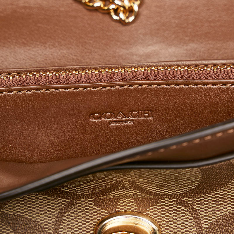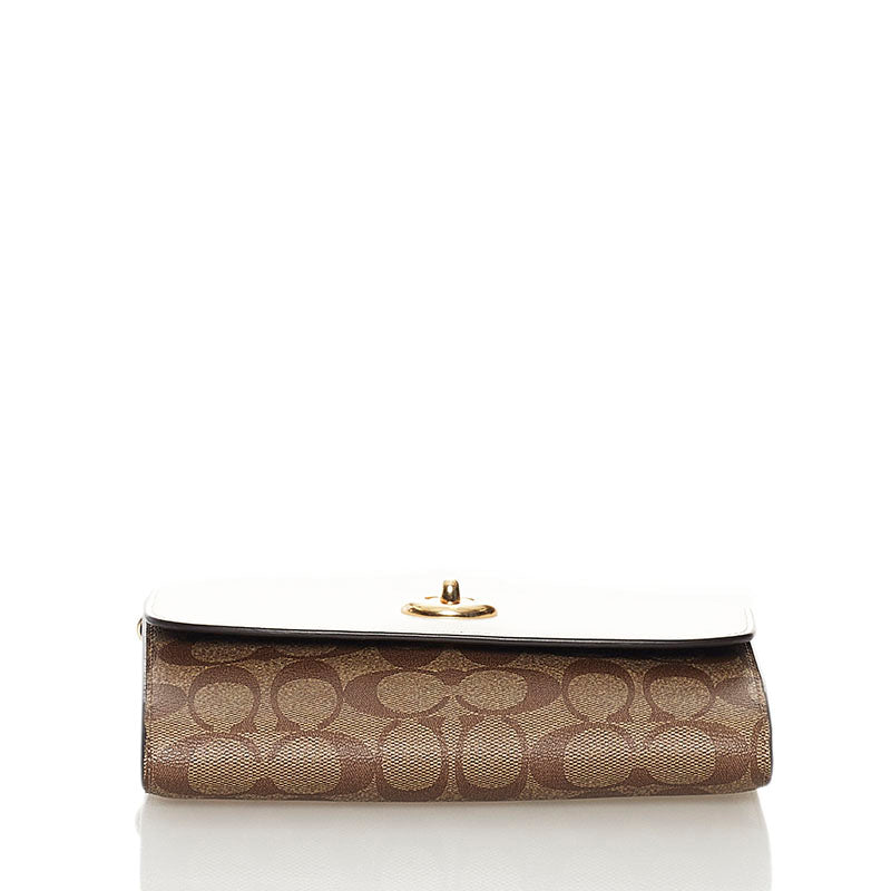 コーチ シグネチャー チェーン ウォレット ベージュ ホワイト PVC レザー レディース COACH 【中古】
