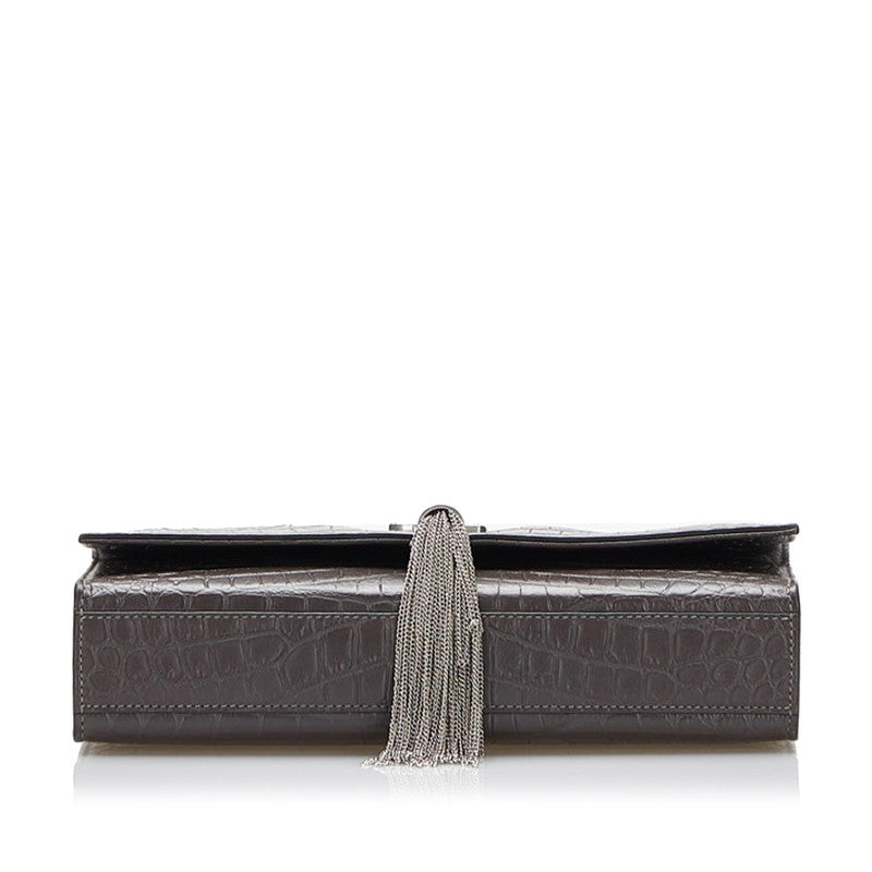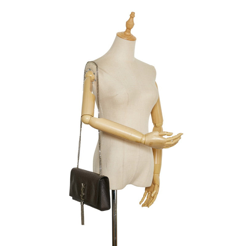 サンローラン ケイト ミディアム 型押し ダブル チェーン ショルダー 354119 ブラウン レザー レディース SAINT LAURENT 【中古】