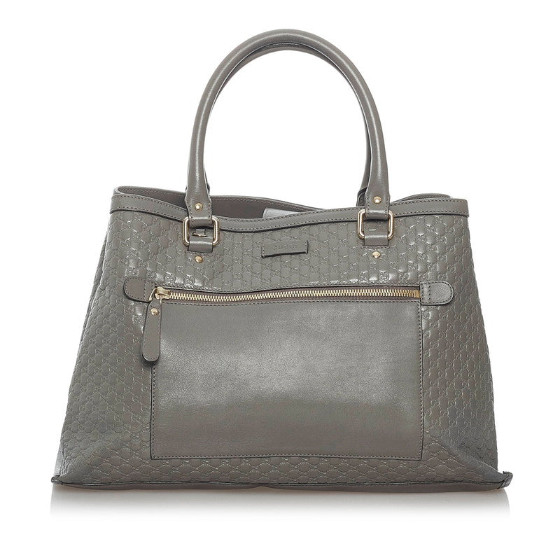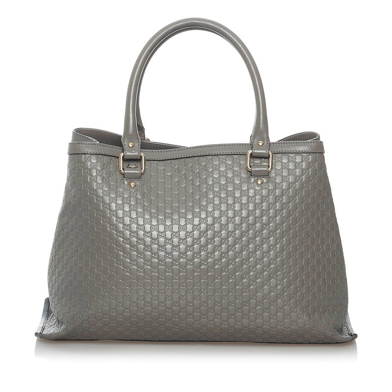 グッチ マイクログッチシマ 510291 グレー レザー ハンドバッグ ショルダーバッグ 2WAY レディース GUCCI 【中古】