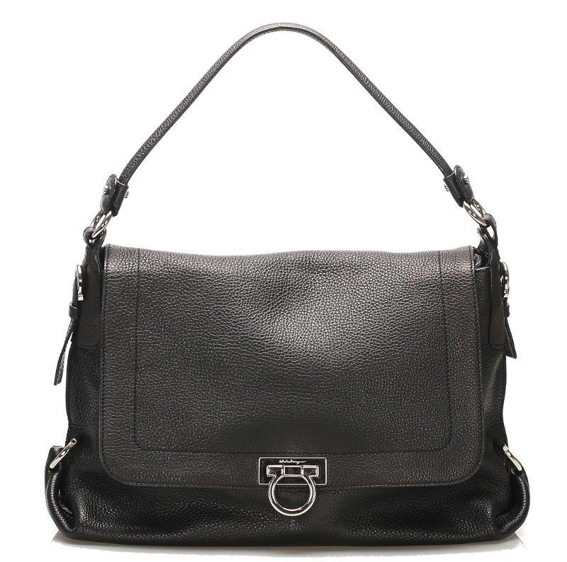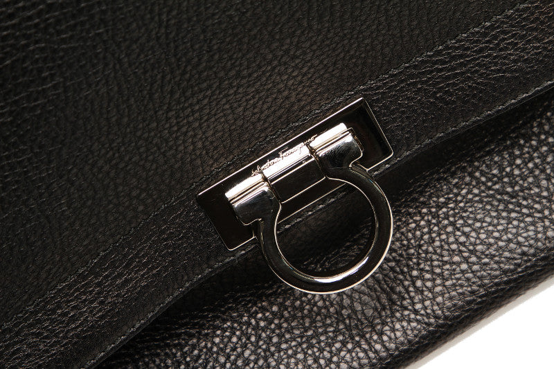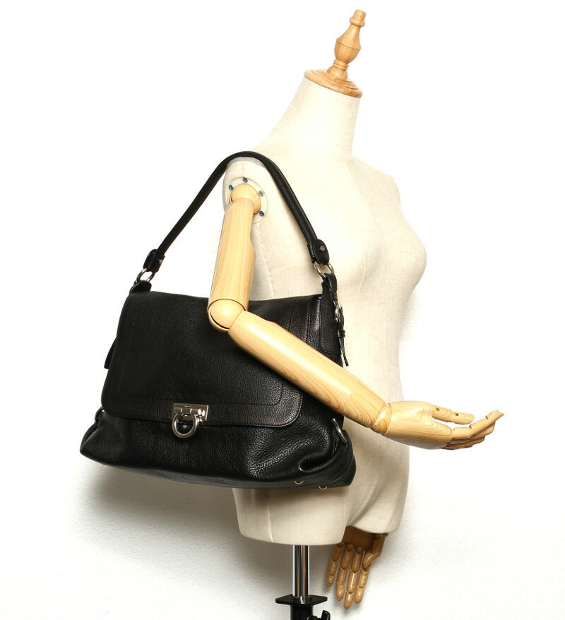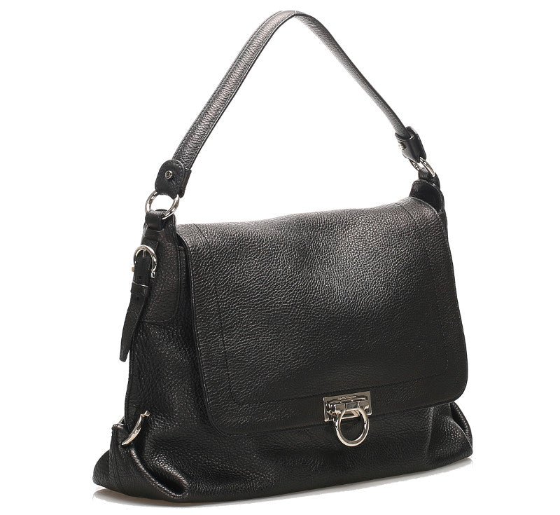 サルヴァトーレフェラガモ ガンチーニ GG-21 D295 ブラック 黒 レザー ショルダーバッグ レディース Salvatore Ferragamo 【中古】