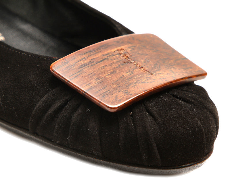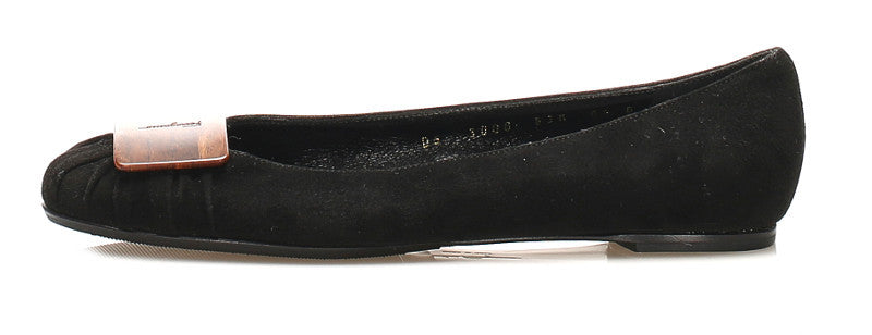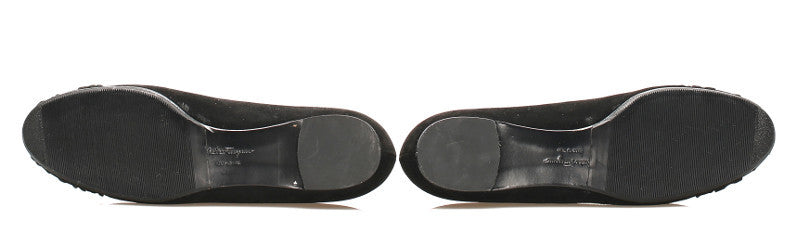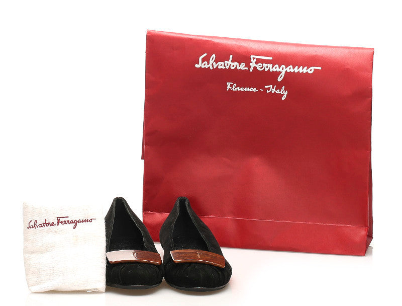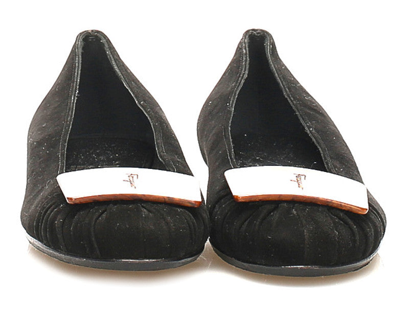 サルヴァトーレフェラガモ ブラック ブラウン スウェード バレエシューズ レディース Salvatore Ferragamo 【中古】
