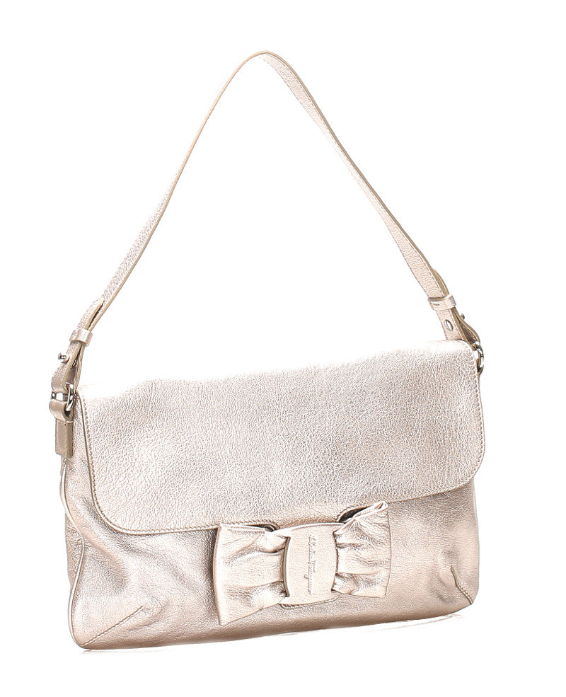 サルヴァトーレフェラガモ ヴァラリボン EY-21 A979 シャンパンゴールド レザー ショルダーバッグ レディース Salvatore Ferragamo 【中古】
