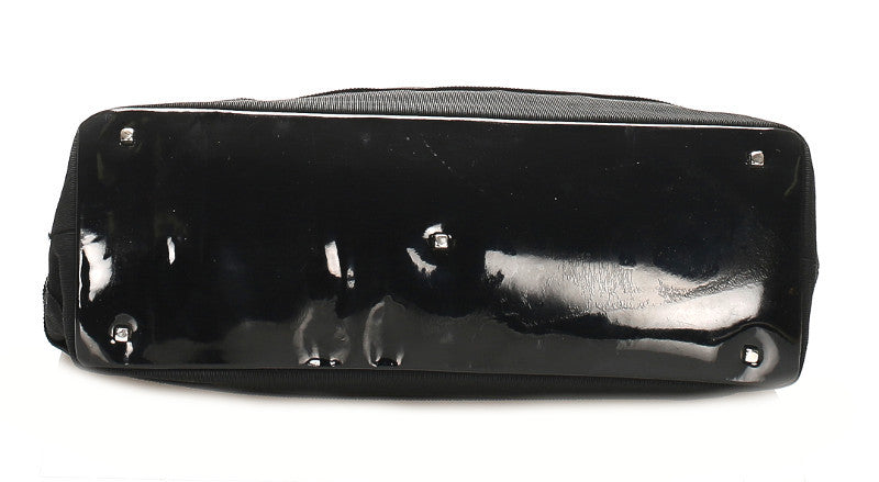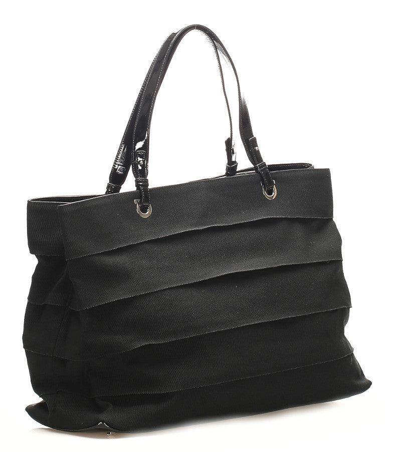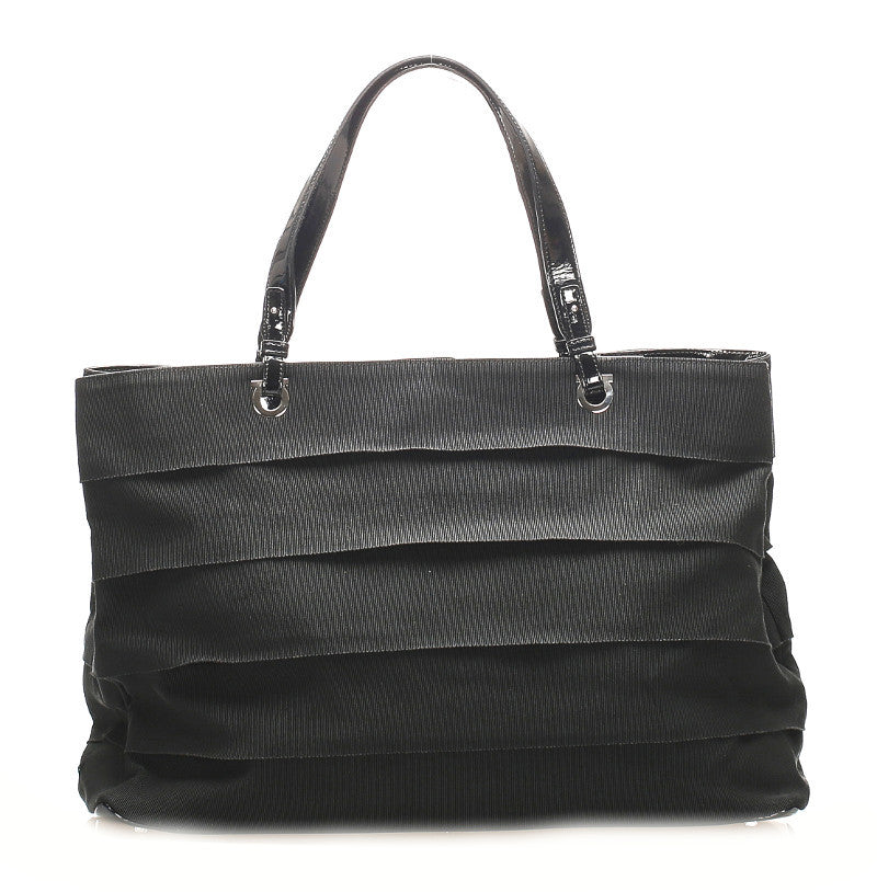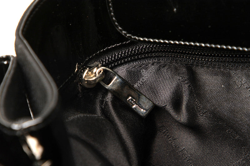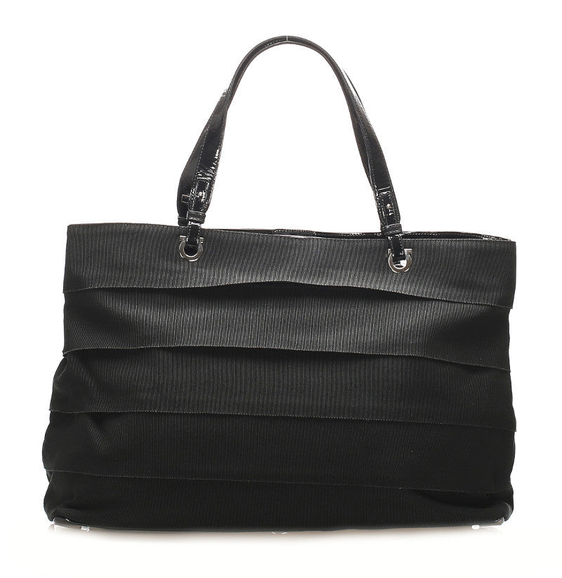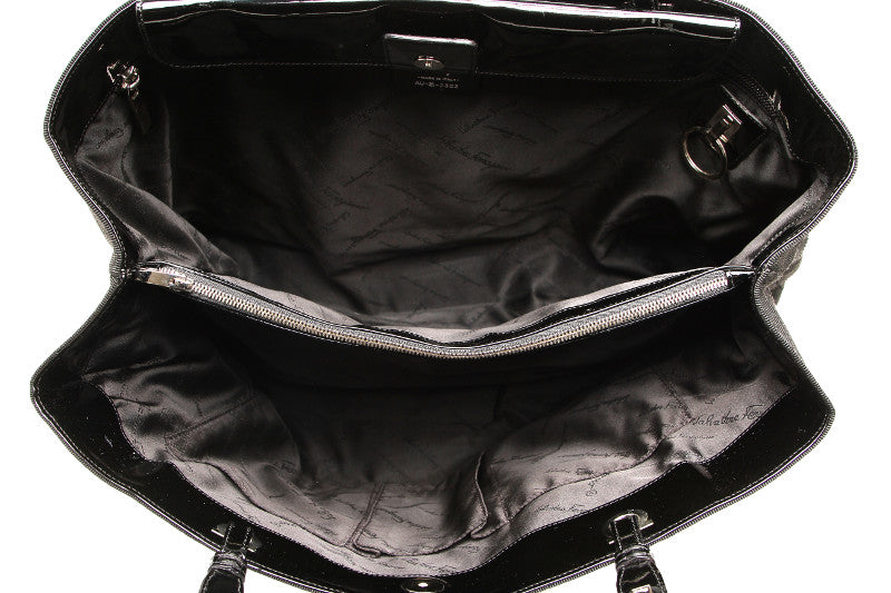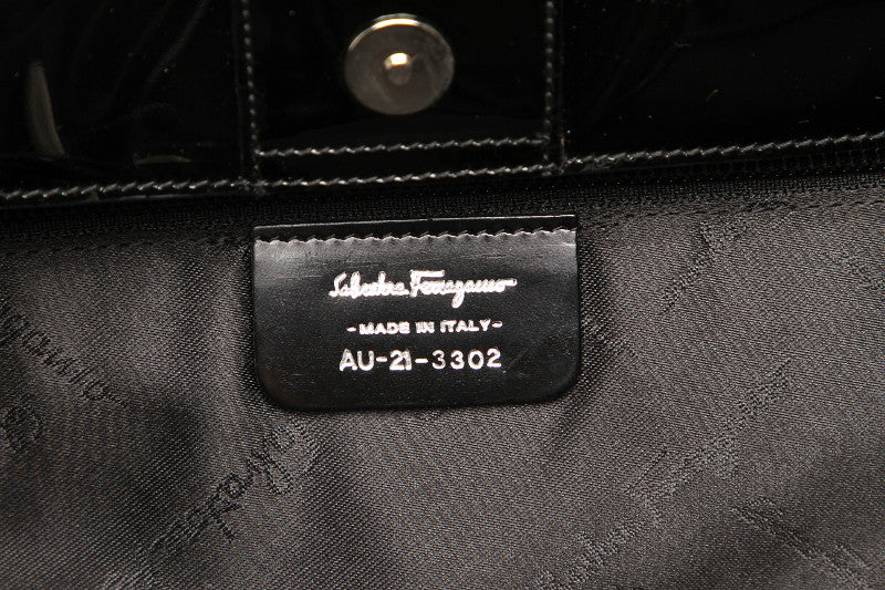 サルヴァトーレフェラガモ ガンチーニ ティアード AU-21-3302 ブラック キャンバス エナメル トートバッグ レディース Salvatore Ferragamo 【中古】