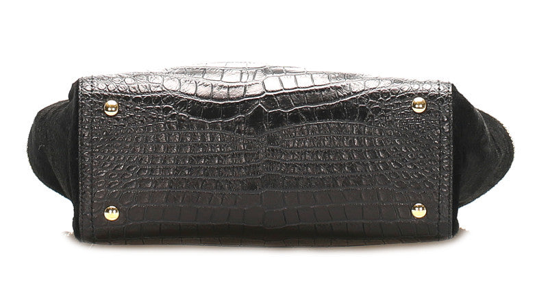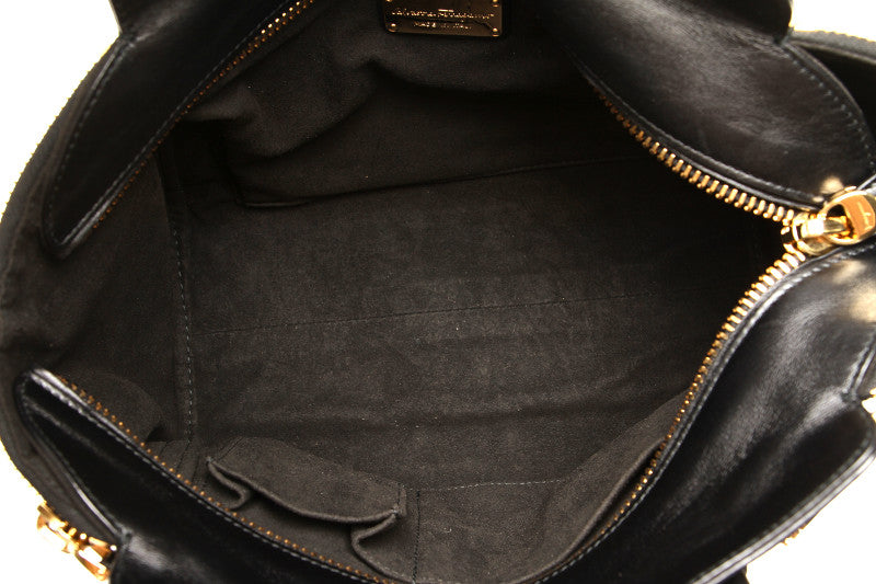 サルヴァトーレフェラガモ ガンチーニ EZ-21 E955 ブラック ゴールド レザー ハラコ ショルダーバッグ レディース Salvatore Ferragamo 【中古】