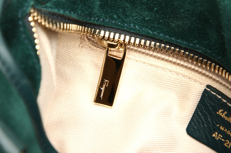 サルヴァトーレフェラガモ グリーン スウェード レザー ハンドバッグ レディース Salvatore Ferragamo 【中古】