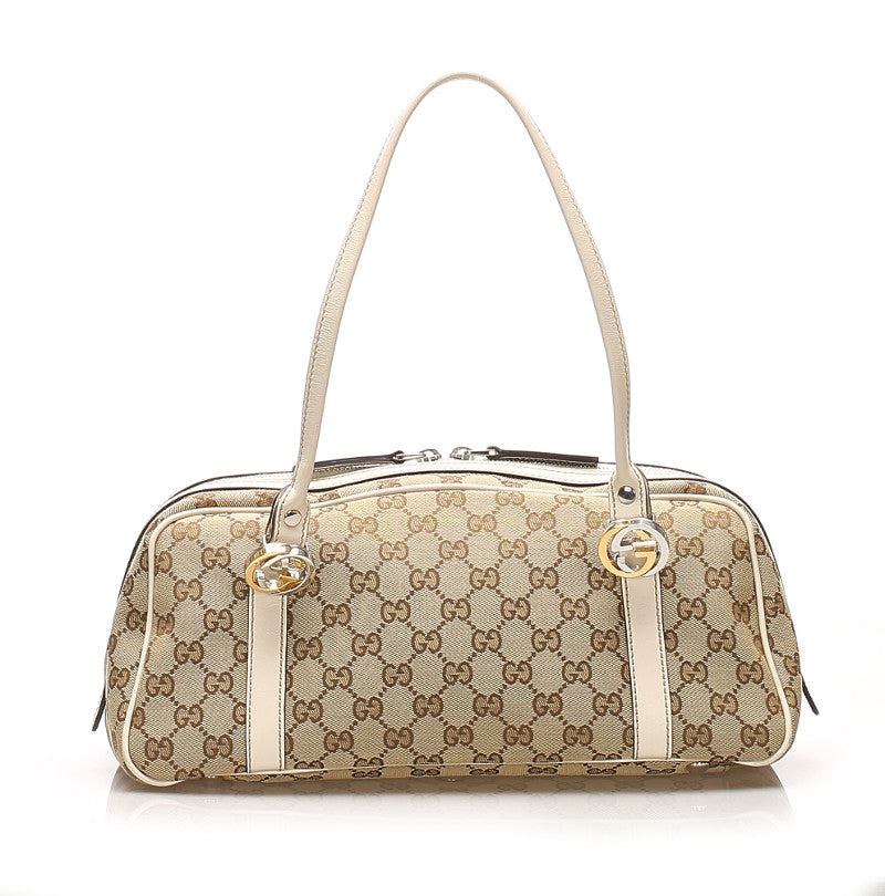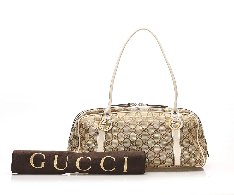 グッチ GGキャンバス ミスGG 232958 ベージュ アイボリー キャンバス レザー ボストンバッグ レディース GUCCI 中古
