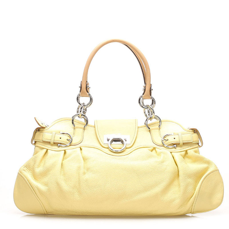 サルヴァトーレフェラガモ ガンチーニ ショルダーバッグ AB-21 8402 イエロー レザー レディース Salvatore Ferragamo 【中古】