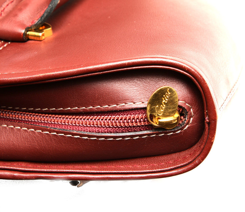 カルティエ マスト ボルドー レザー ショルダーバッグ レディース CARTIER 中古