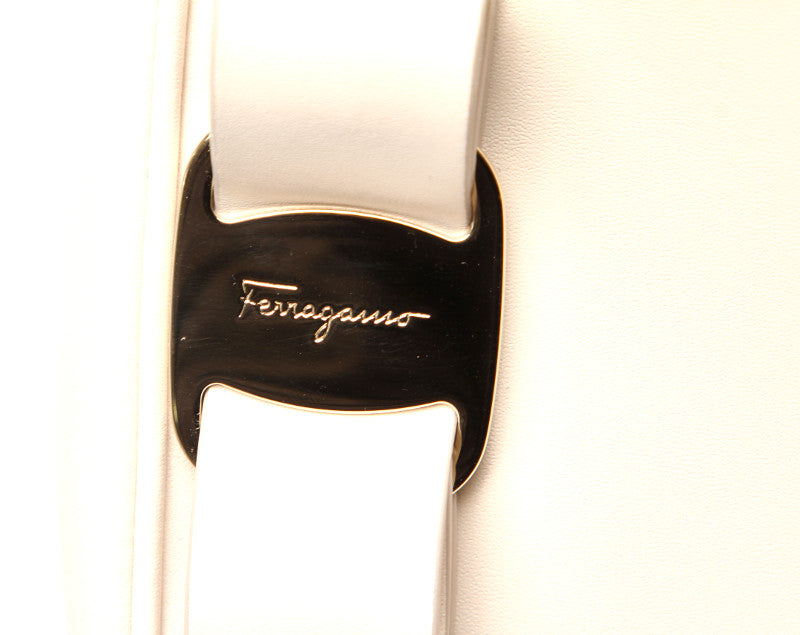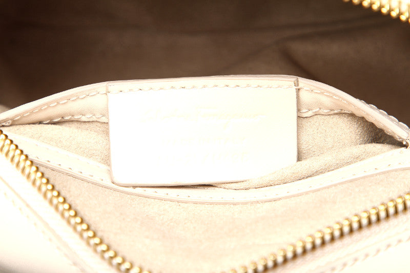 サルヴァトーレフェラガモ ヴァラリボン AU-21 H498 ベージュ ホワイト レザー ショルダーバッグ レディース Salvatore Ferragamo 中古