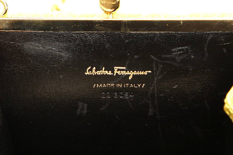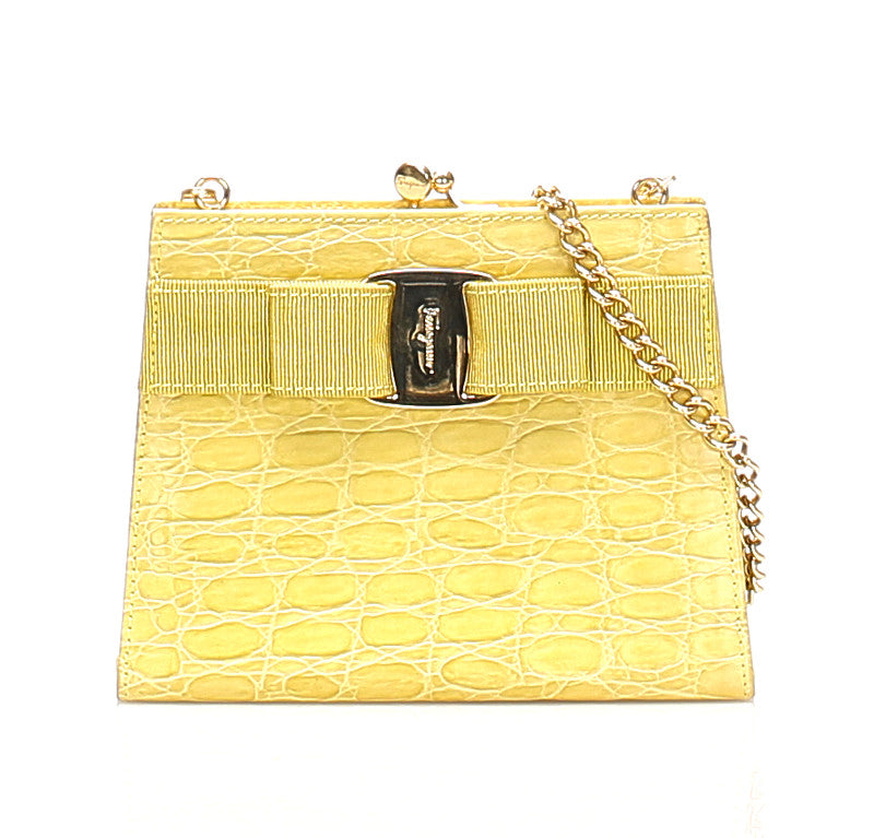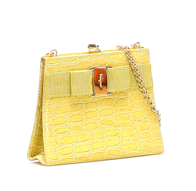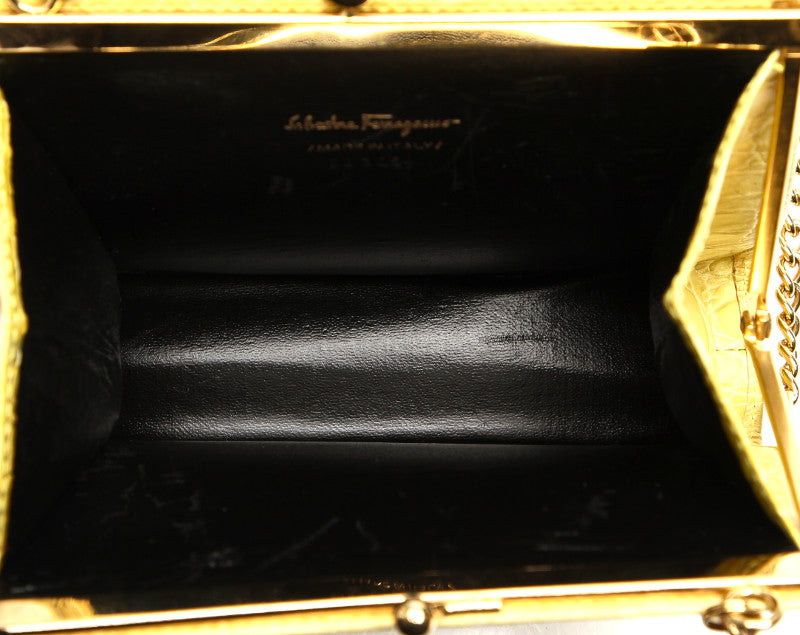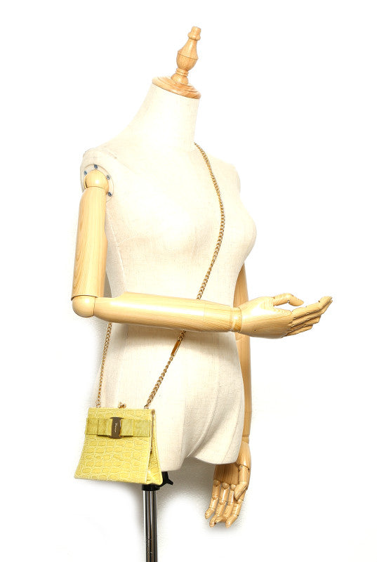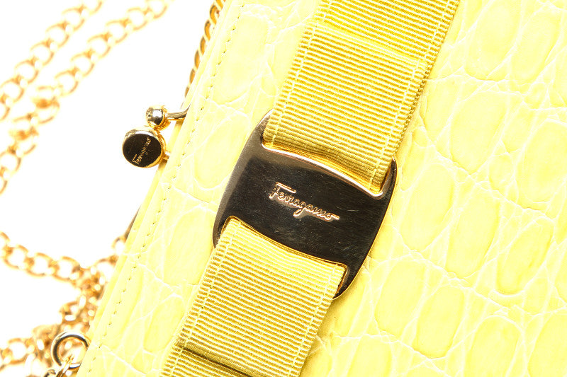 サルヴァトーレフェラガモ ヴァラリボン 22 3054 イエロー クロコ型押し ショルダーバッグ レディース Salvatore Ferragamo 中古